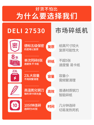 得力27530碎纸机办公室专用大型家用小型自动 桌面电动文件粉碎机