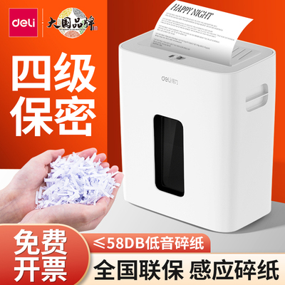 得力碎纸机办公室专用大容量全自动办公家用大功率桌面纸张颗粒状粉碎机迷你小型4级保密碾碎机光盘卡
