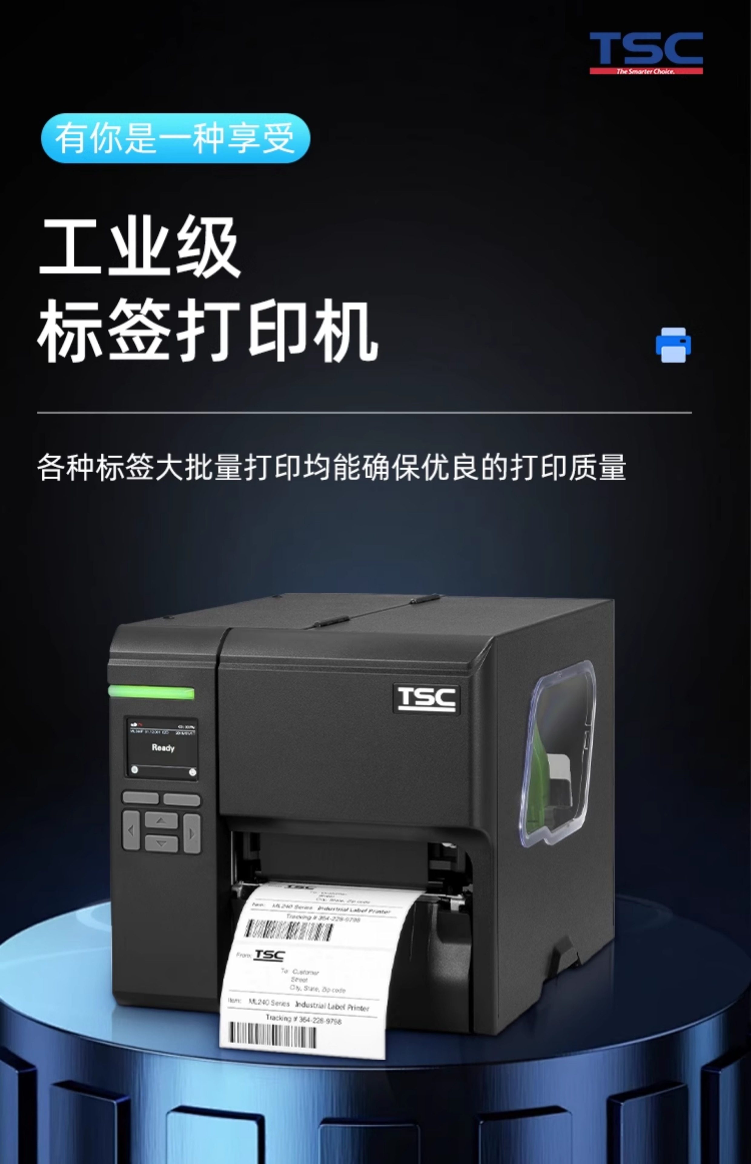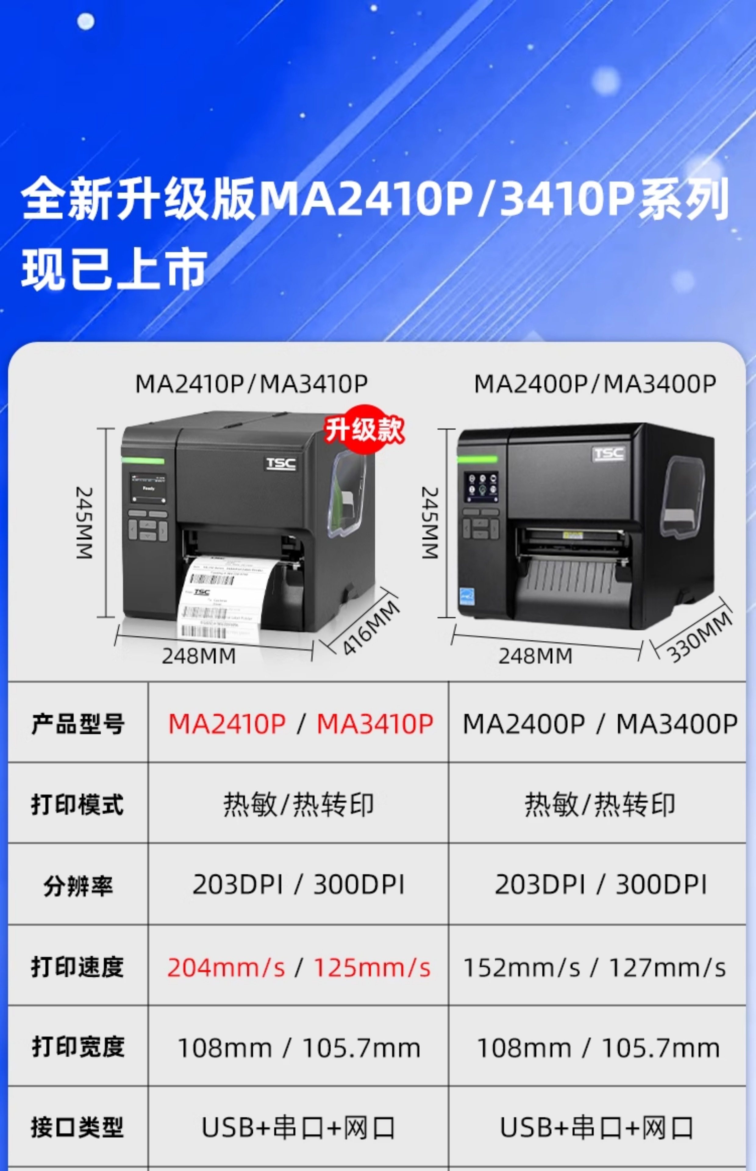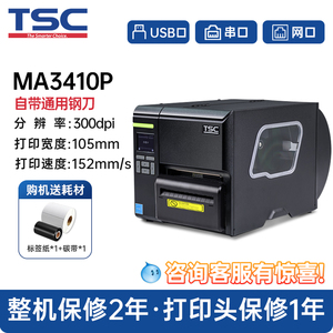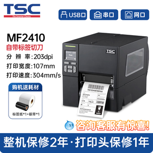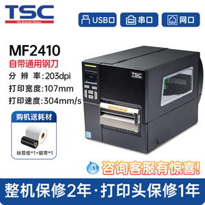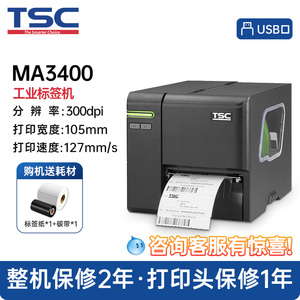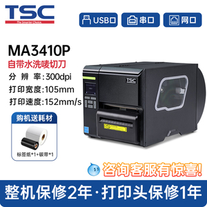 TSC MA2400/3400工业级标签打印机商用食品条码不干胶服装吊牌水洗唛亚银合格证300dpi带切刀MF2410/3410