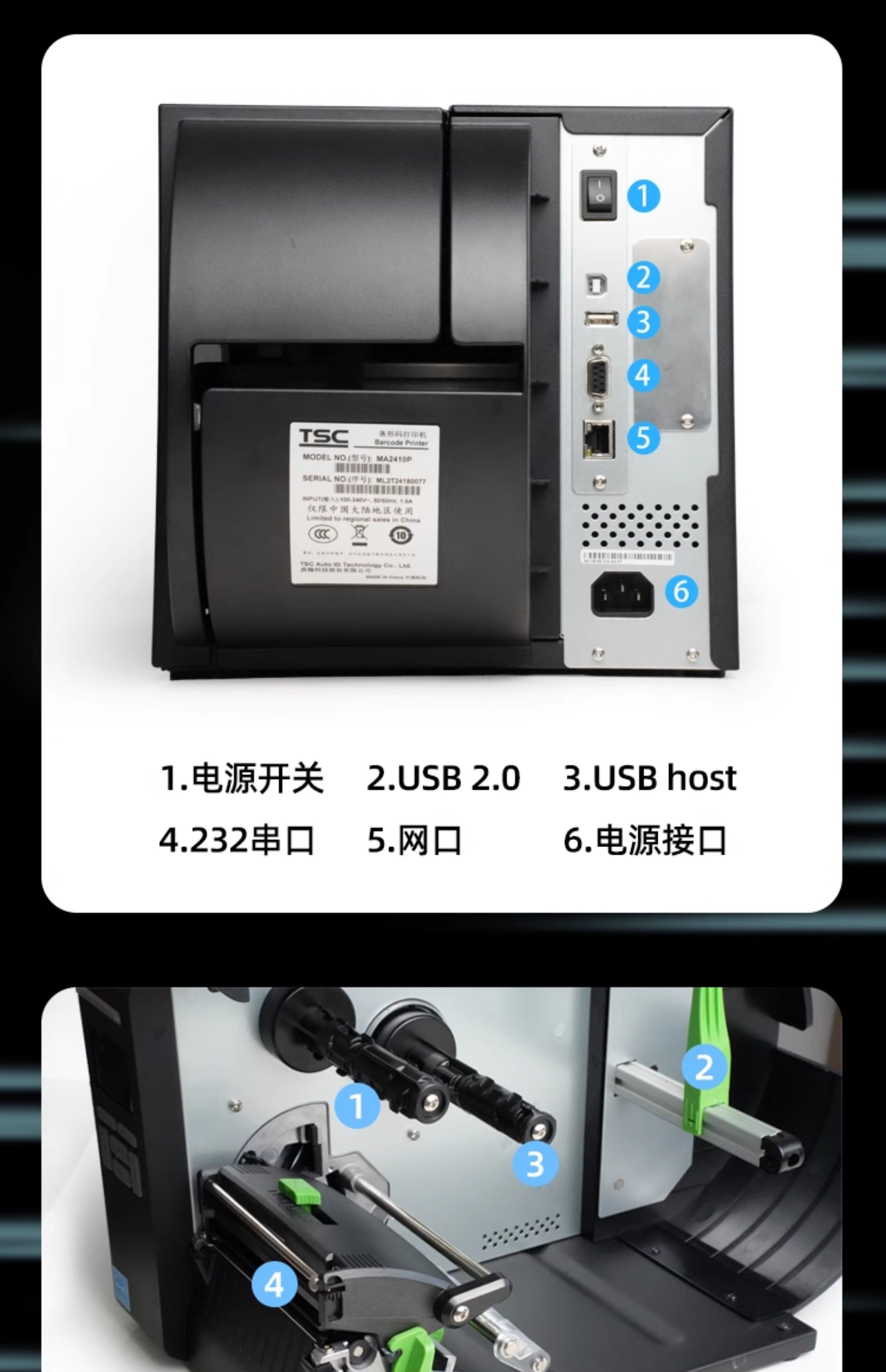 商品名称:TSC MA2400/3400工业级标签打印机商用食品条码不干胶服装吊牌水洗唛亚银合格证300dpi带切刀MF2410/3410