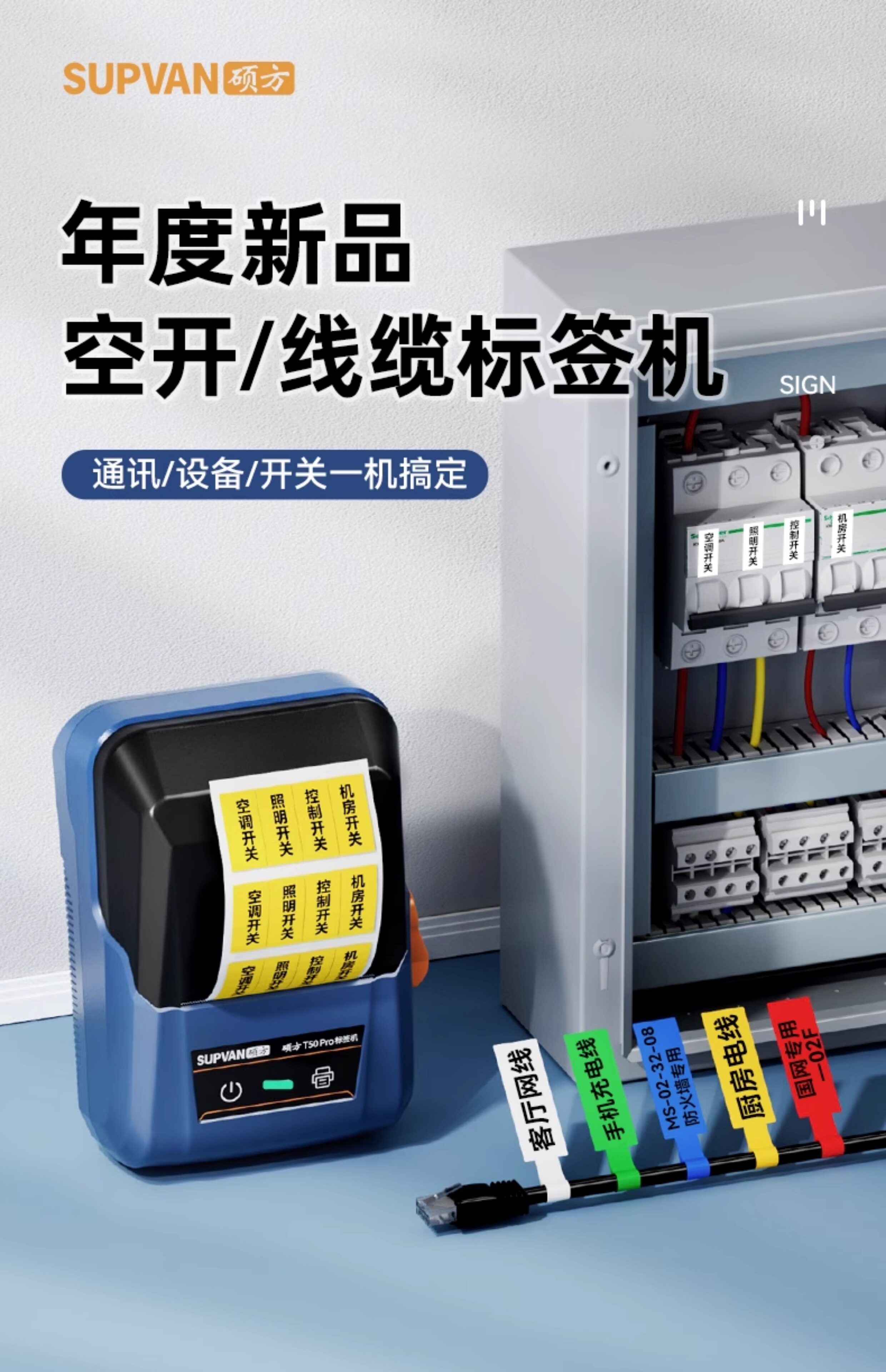 硕方T50pro开关标识贴标签打印机小型配电箱电工网线光纤空开打标机防水手持便携式弱电工程通信线缆标签机