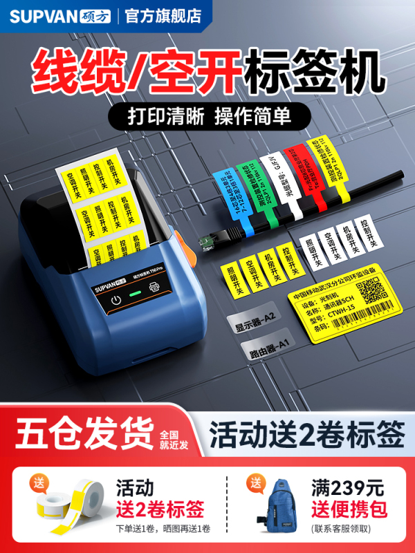 商品名称:硕方T50pro开关标识贴标签打印机小型配电箱电工网线光纤空开打标机防水手持便携式弱电工程通信线缆标签机