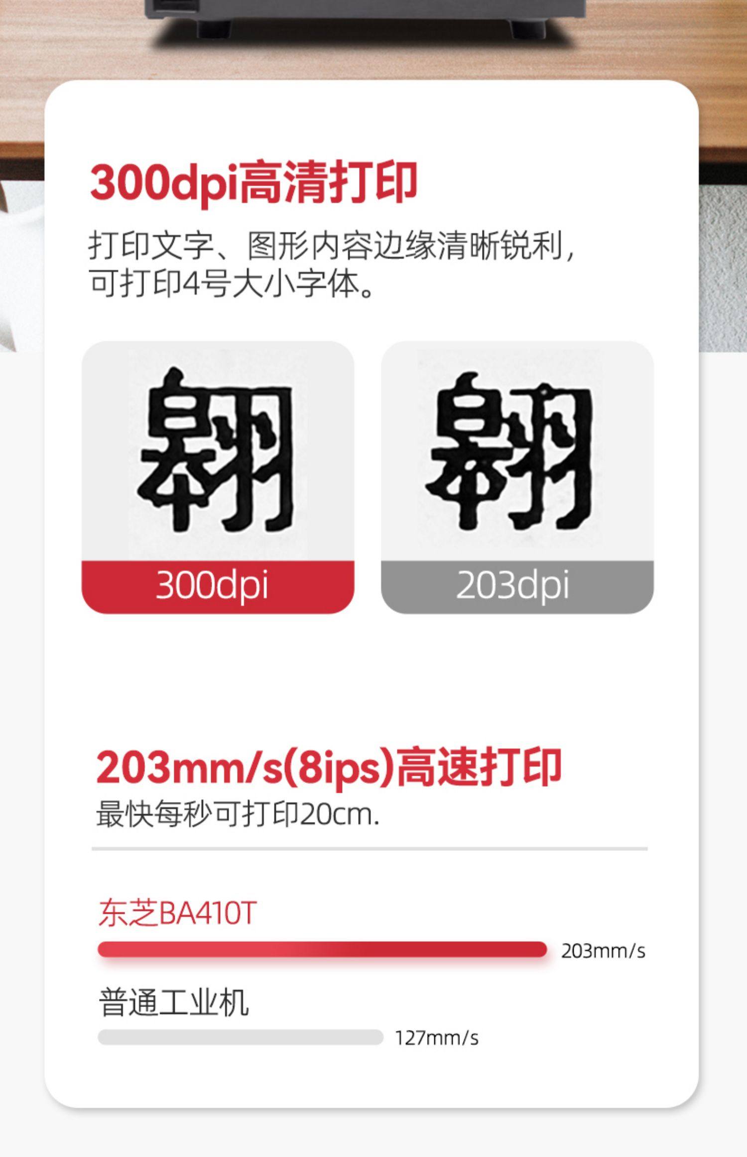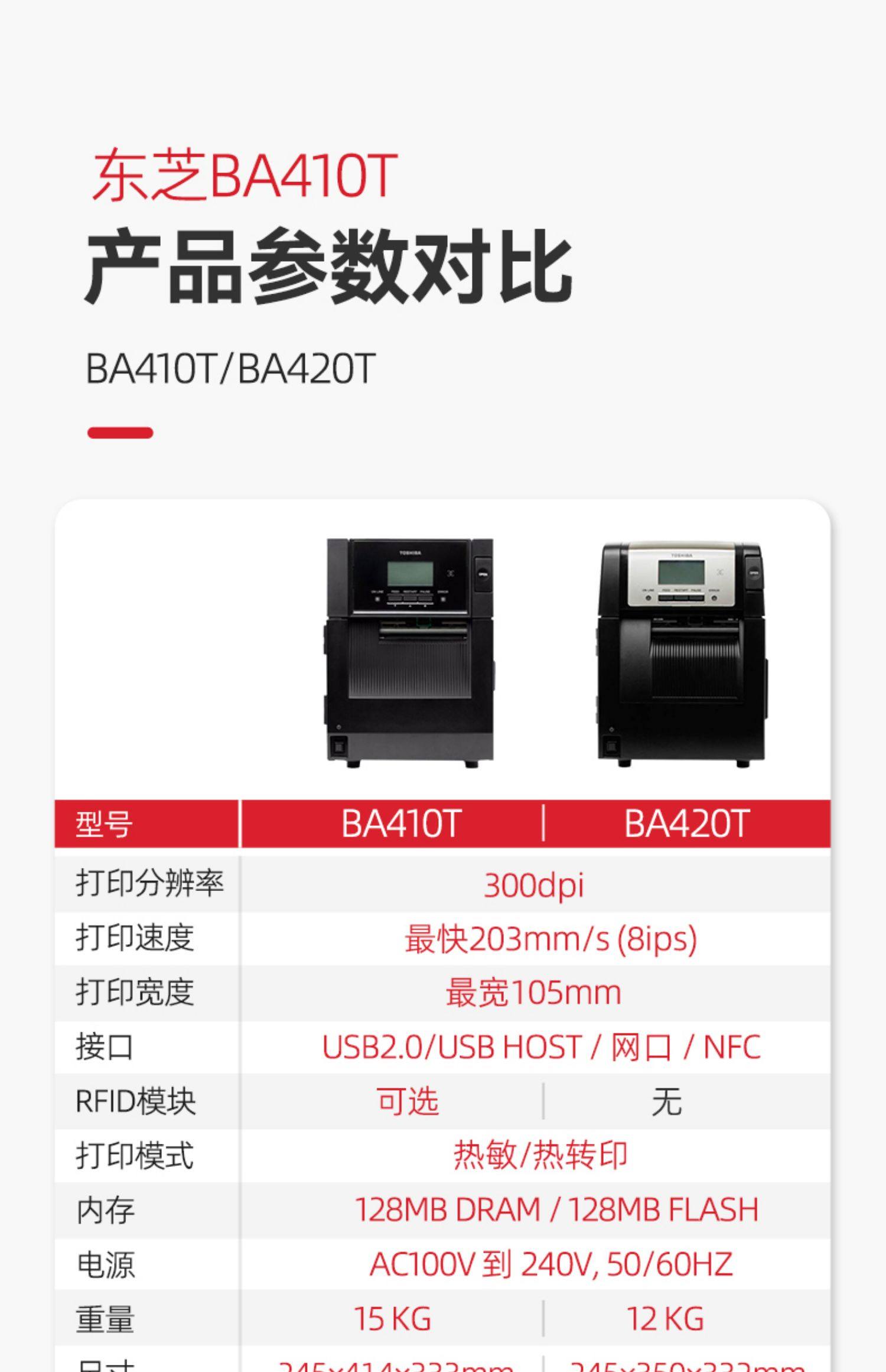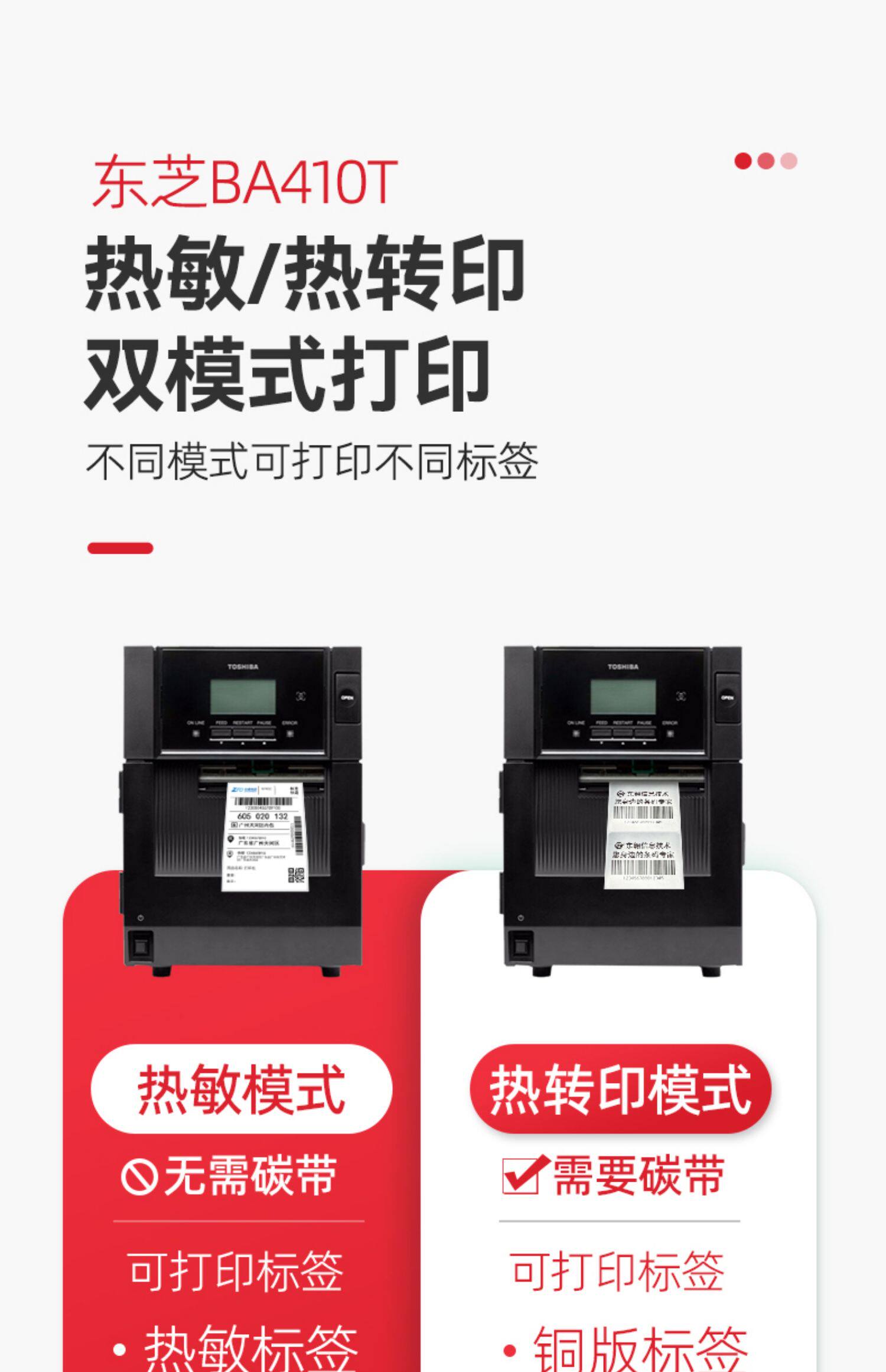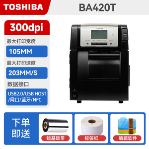 TOSHIBA东芝BA410T/420T条码打印机超市价格商品标签服装吊牌标签机RFID工业条码机300DPI