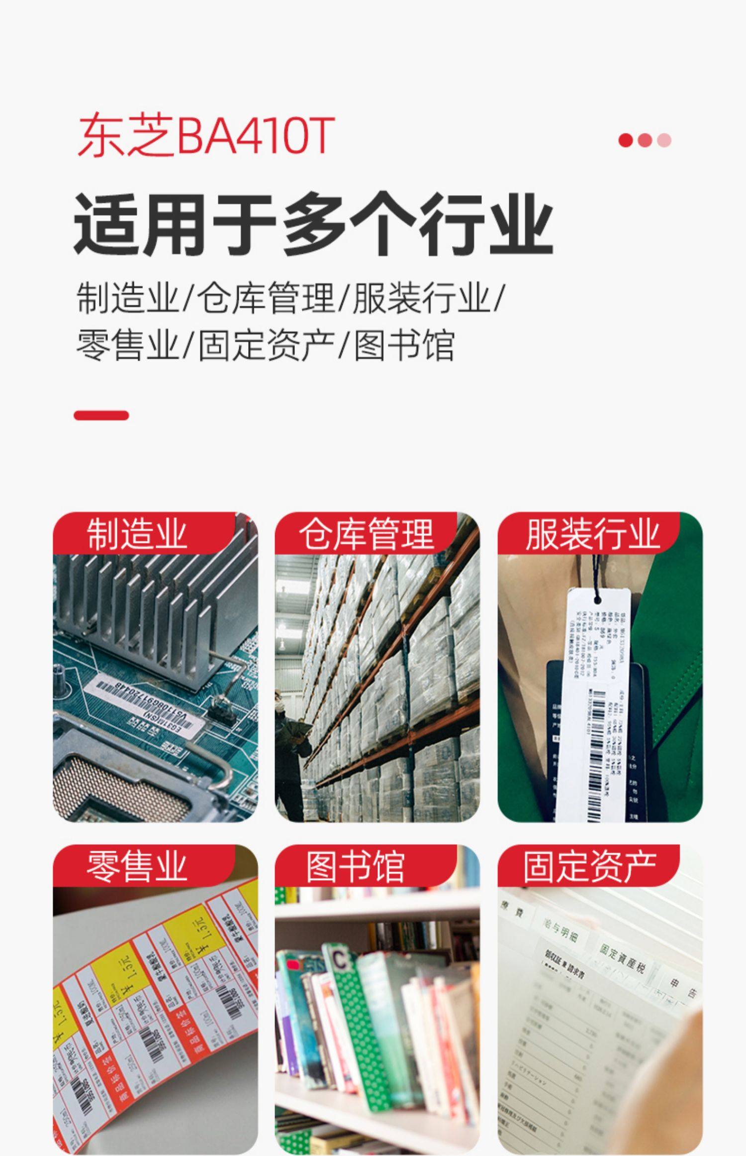 商品名称:TOSHIBA东芝BA410T/420T条码打印机超市价格商品标签服装吊牌标签机RFID工业条码机300DPI