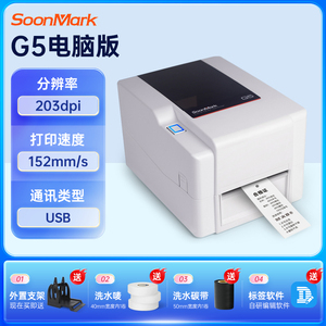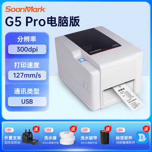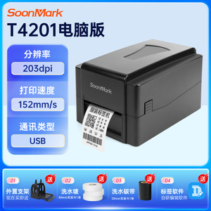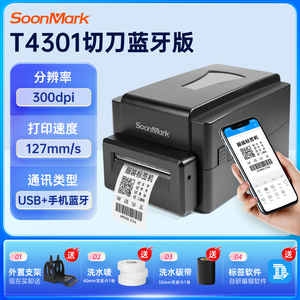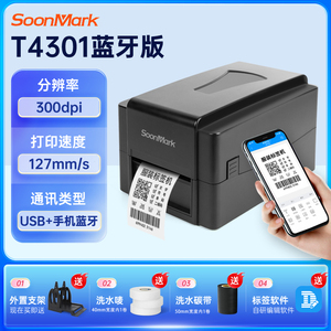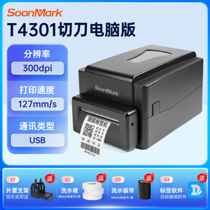 索马克T4301标签打印机服装吊牌合格证洗水唛尼龙布缎带亚银纸不干胶标签碳带切刀条码打印机300DPI防静电