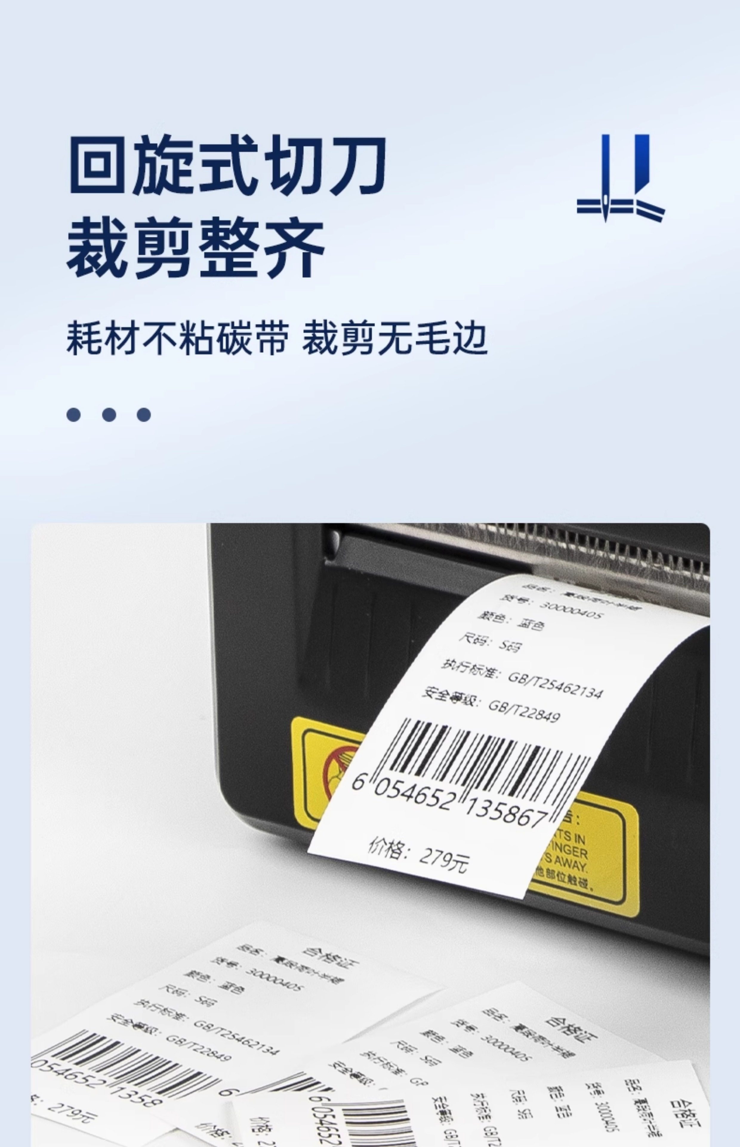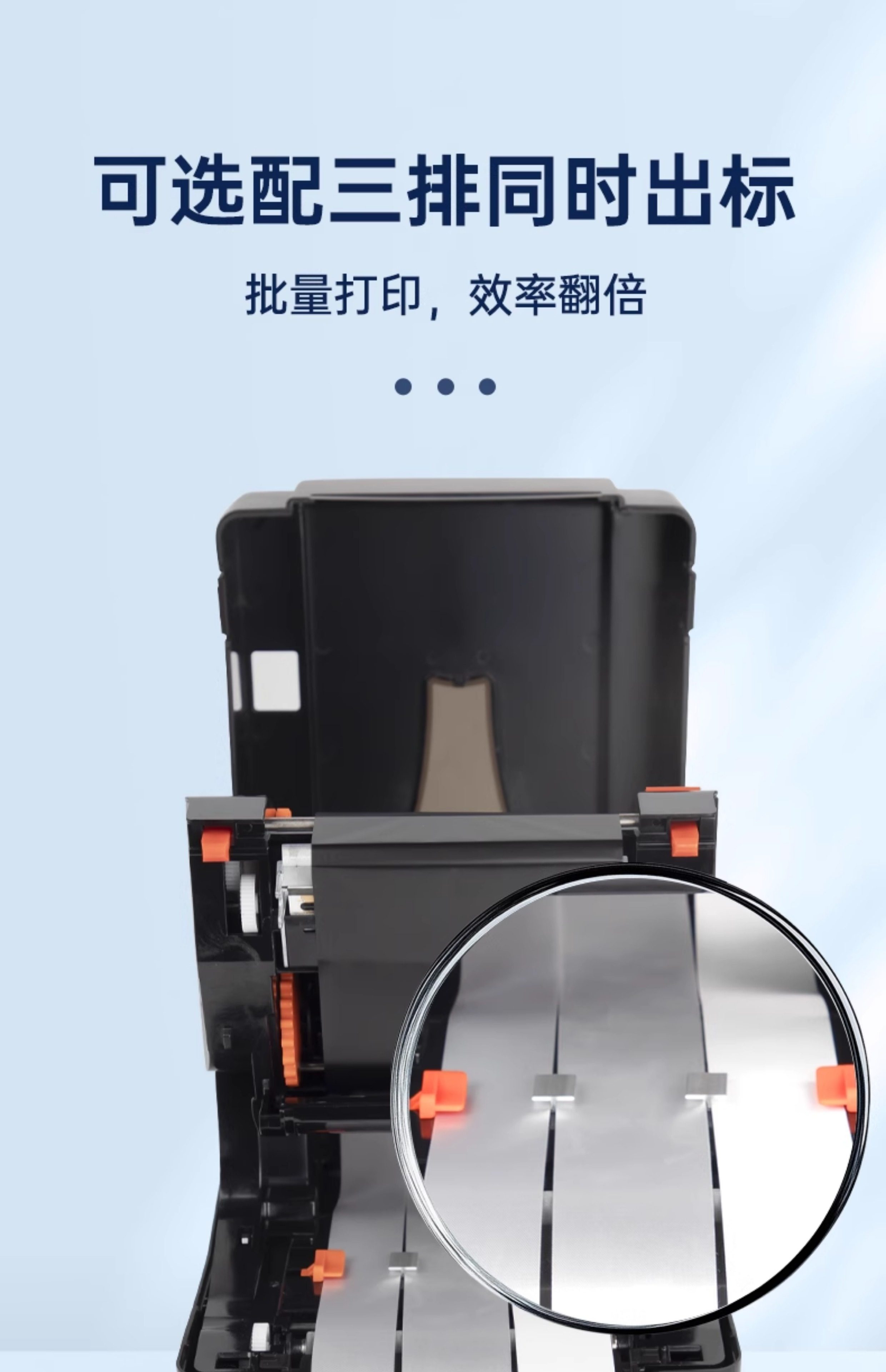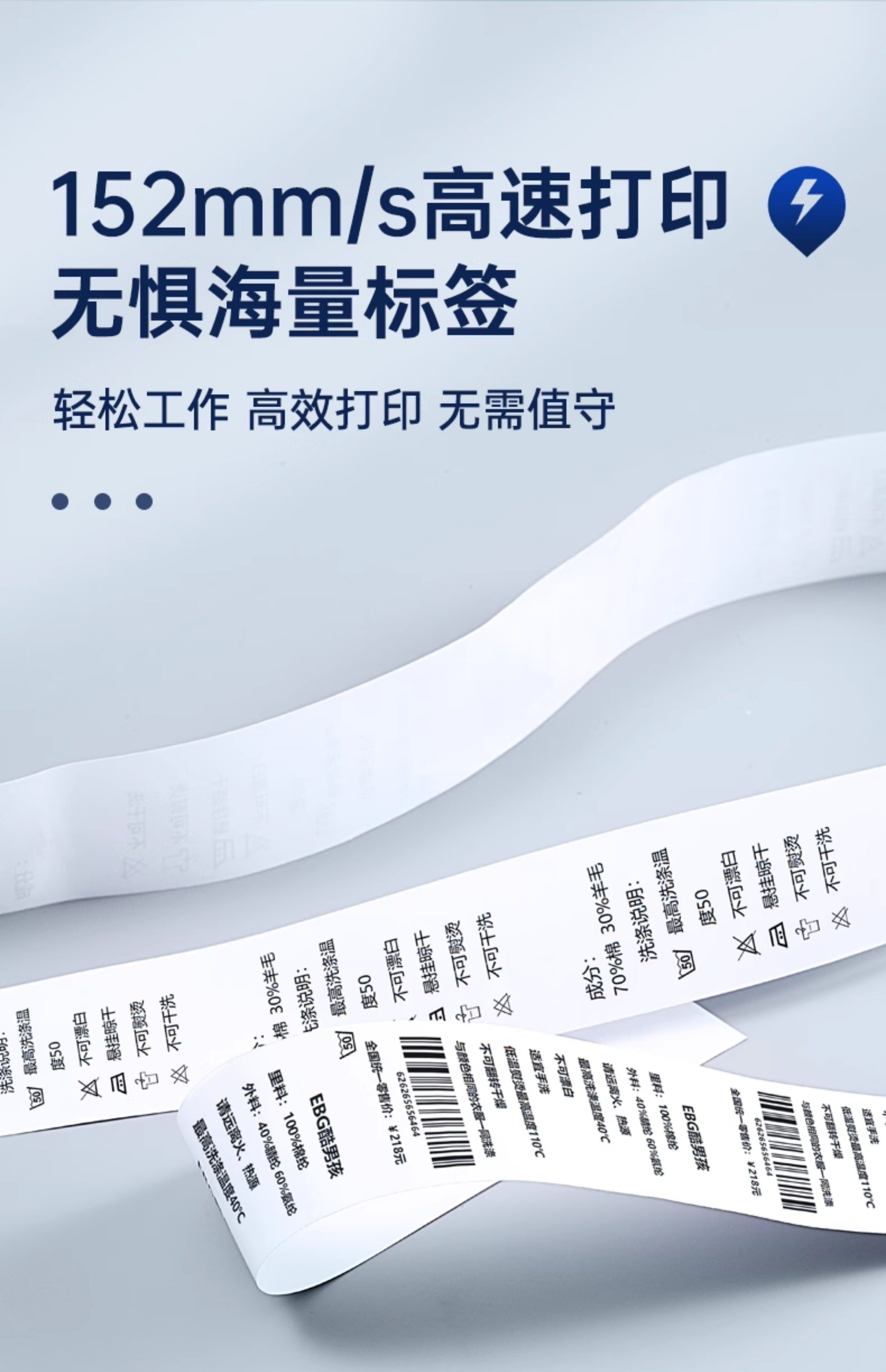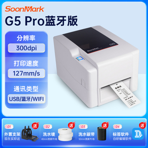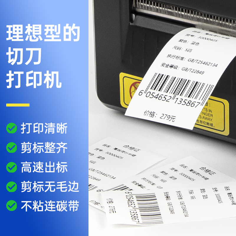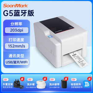 商品名称:索马克T4301标签打印机服装吊牌合格证洗水唛尼龙布缎带亚银纸不干胶标签碳带切刀条码打印机300DPI防静电