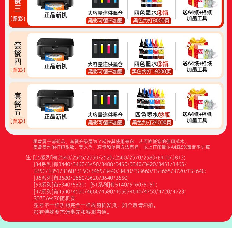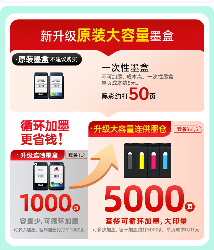 套餐五 【外置连供大墨仓打印+3套墨水】