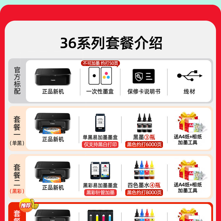 套餐二 【黑彩打印+4瓶墨水】