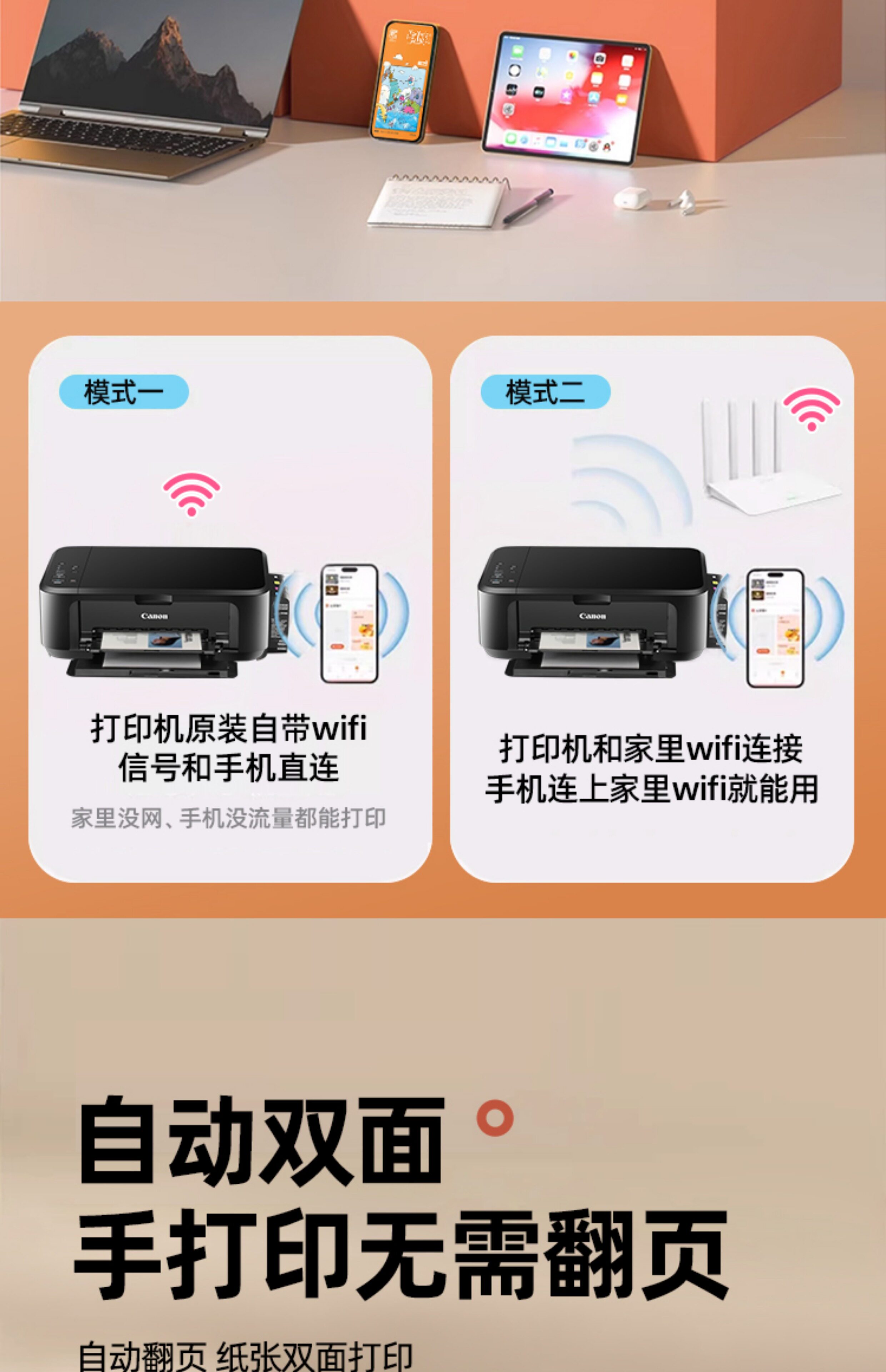 3650【自带wifi+自动双面+手机+电脑+A4无边距】