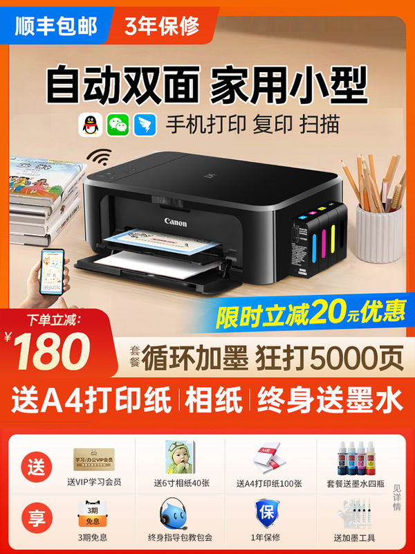 佳能3680彩色打印机家用小型学生复印扫描一体机手机照片连供墨仓