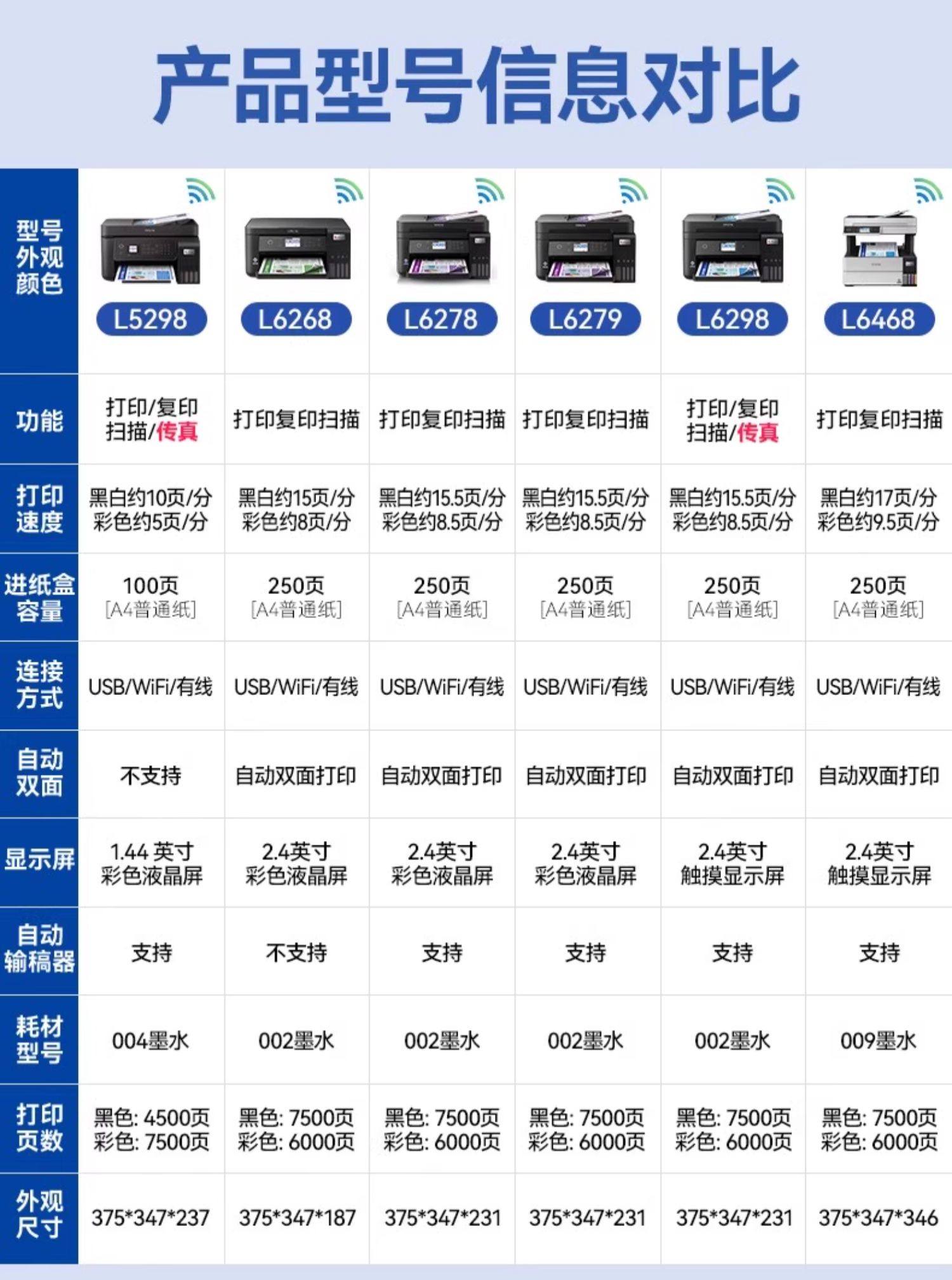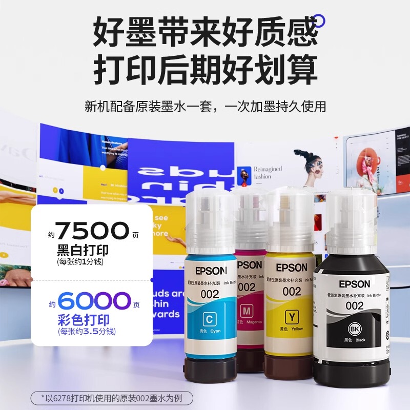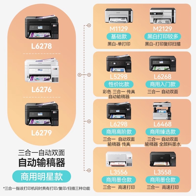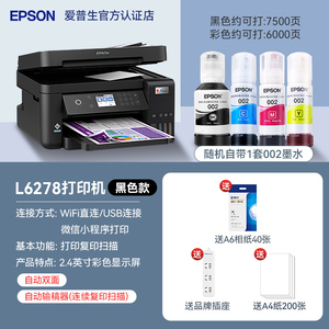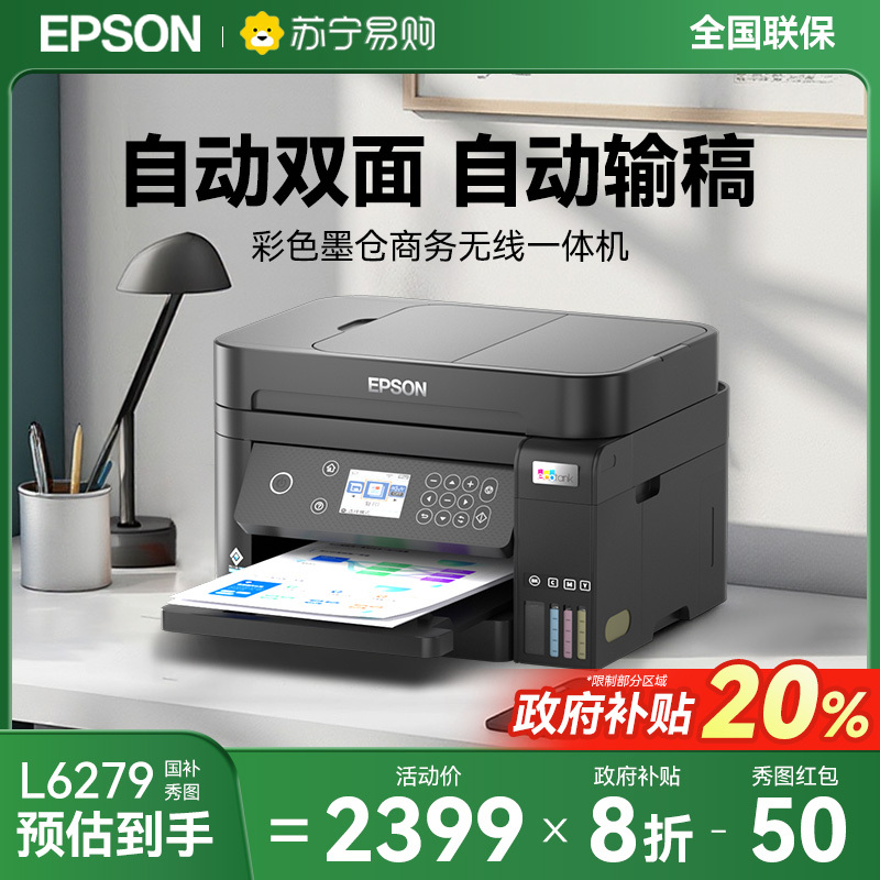 商品名称:[政府补贴20%]爱普生L6278 L6279 L6276 L6268 打印机办公墨仓小型家用无线复印扫描传真输稿自动双面 1250