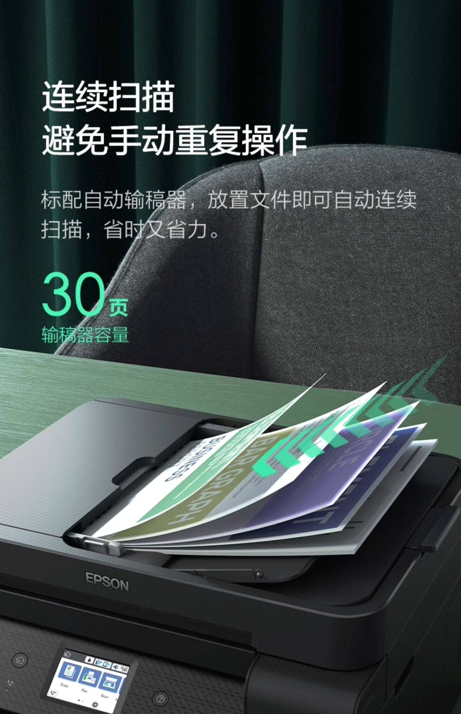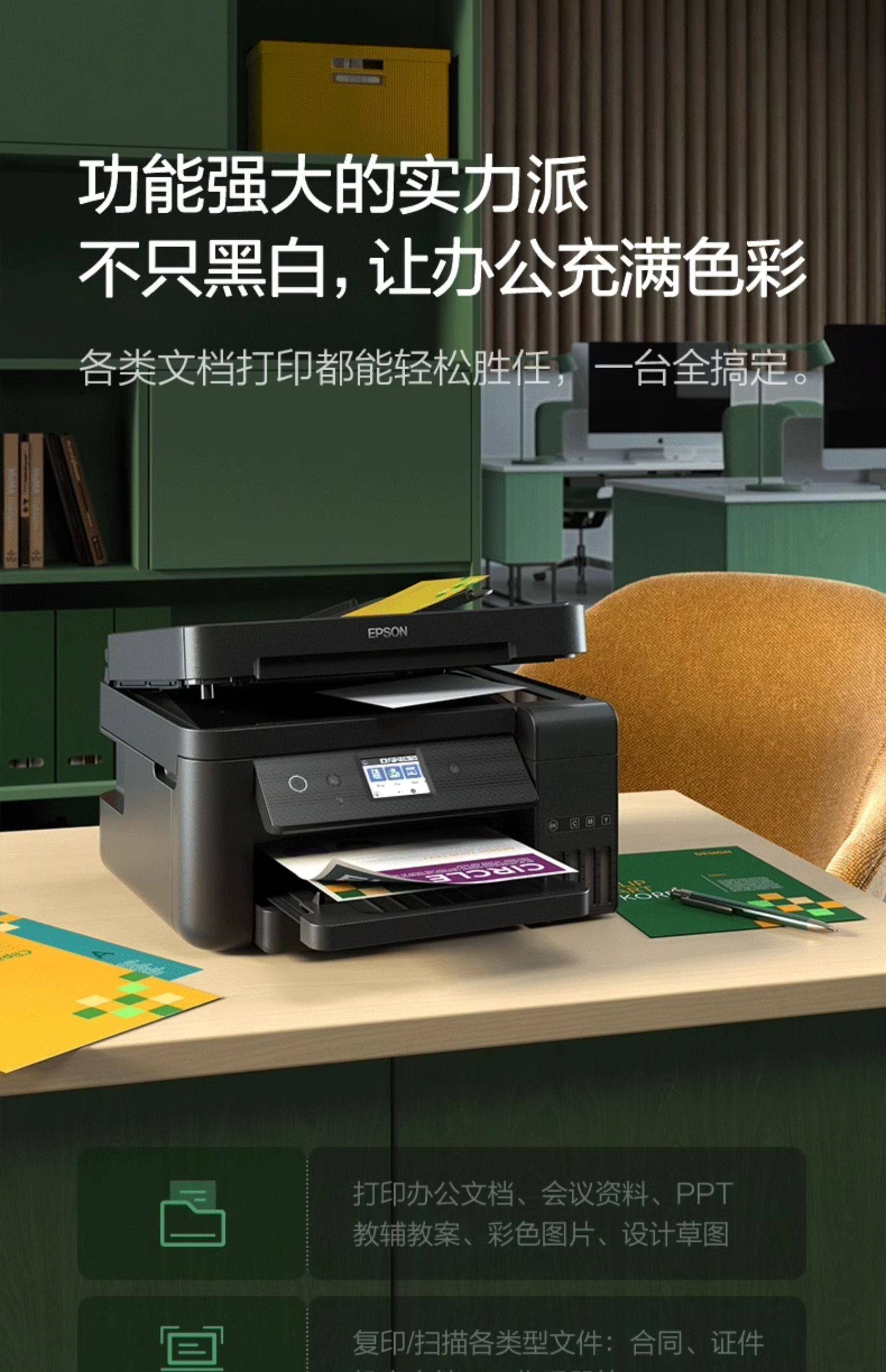 [政府补贴20%]爱普生L6278 L6279 L6276 L6268 打印机办公墨仓小型家用无线复印扫描传真输稿自动双面 1250