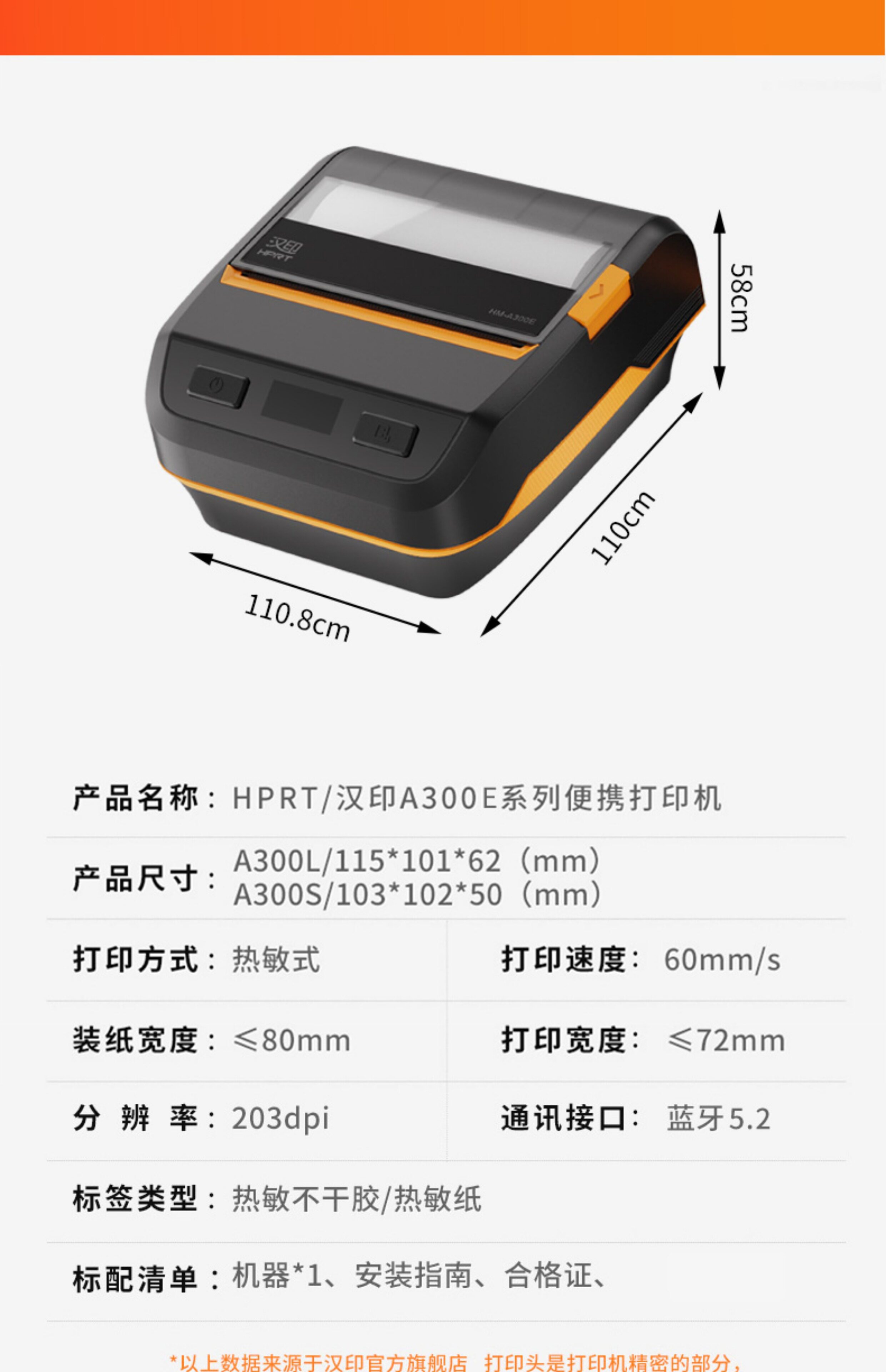 商品名称:汉印A300E电子面单取件码标签热敏蓝牙便携式物流快运打印机书亦