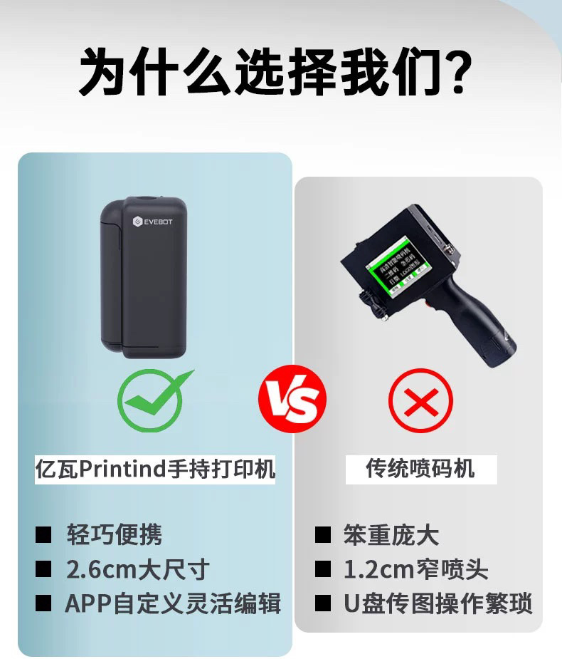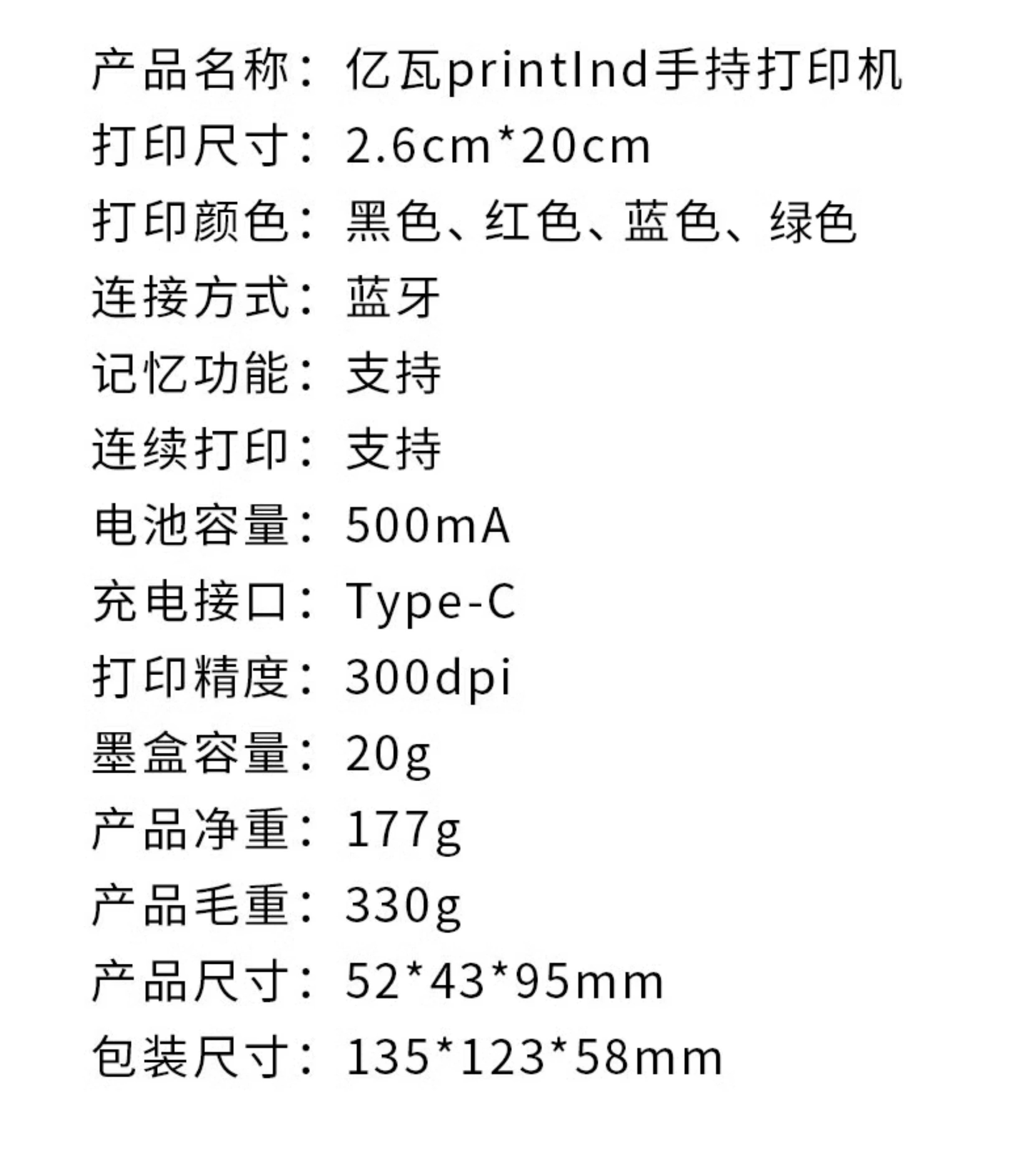 亿瓦printInd手持logo打印机小型打码机 塑料袋衣服布料纸盒杯子