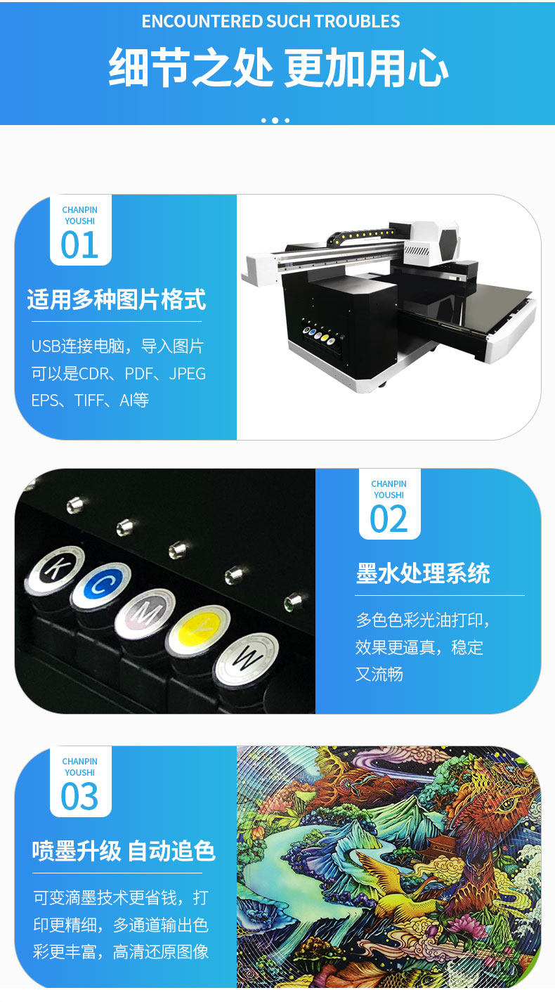 商品名称:6090小型uv平板打印机水晶标亚克力金属标牌茶叶礼盒广告印刷机器
