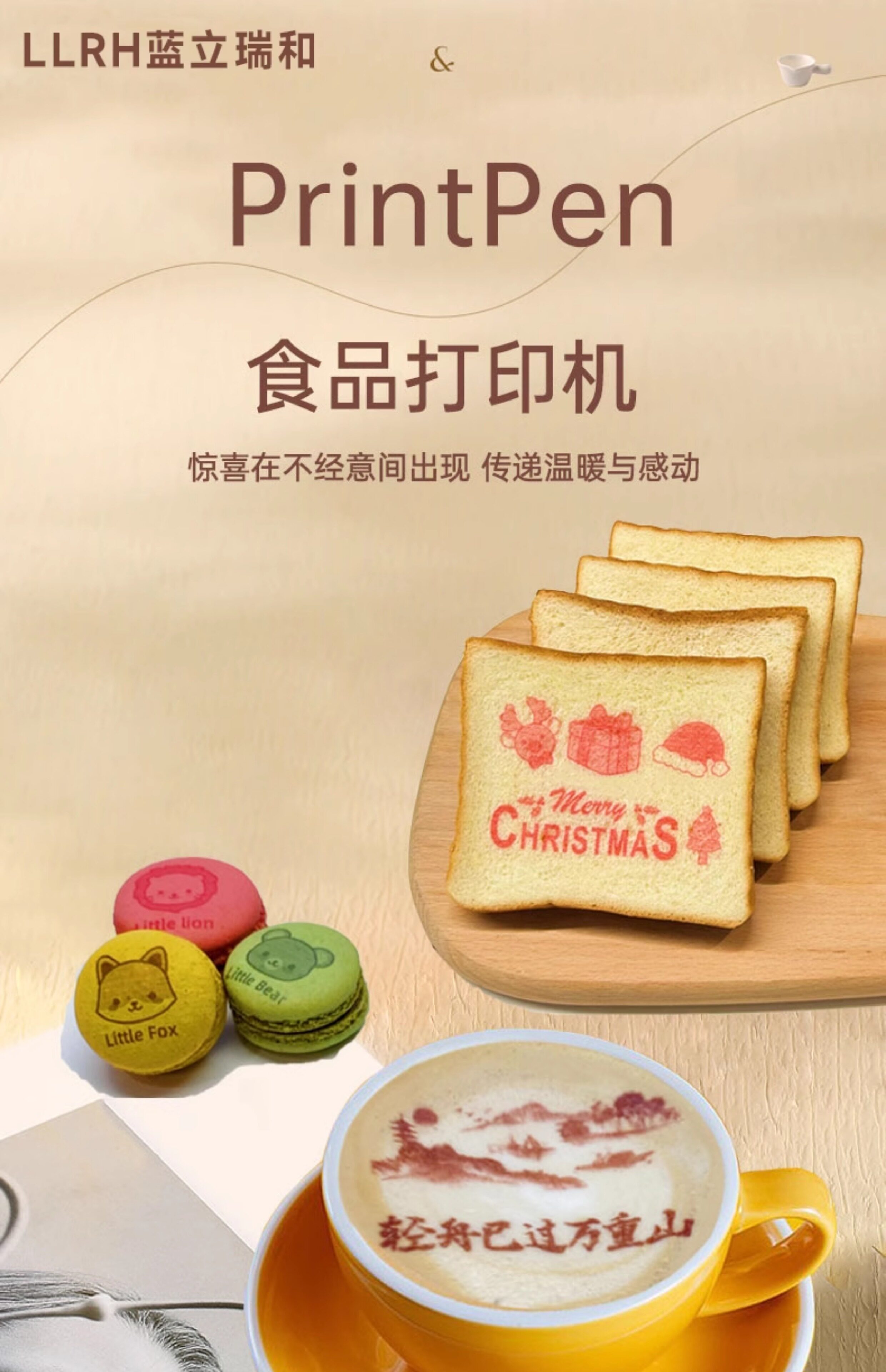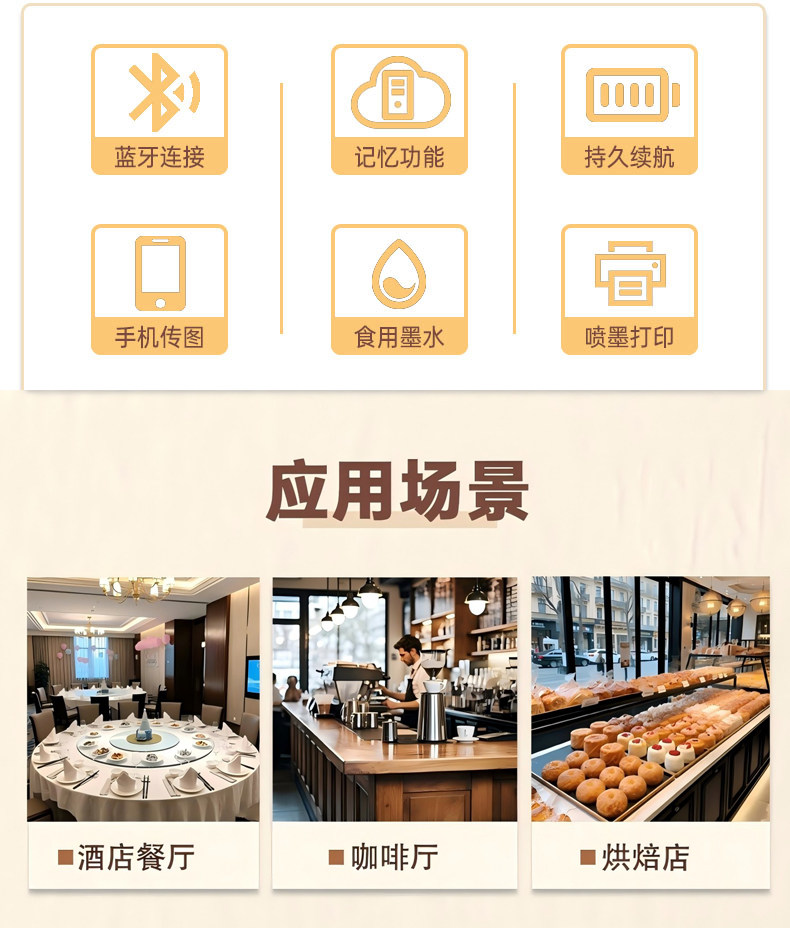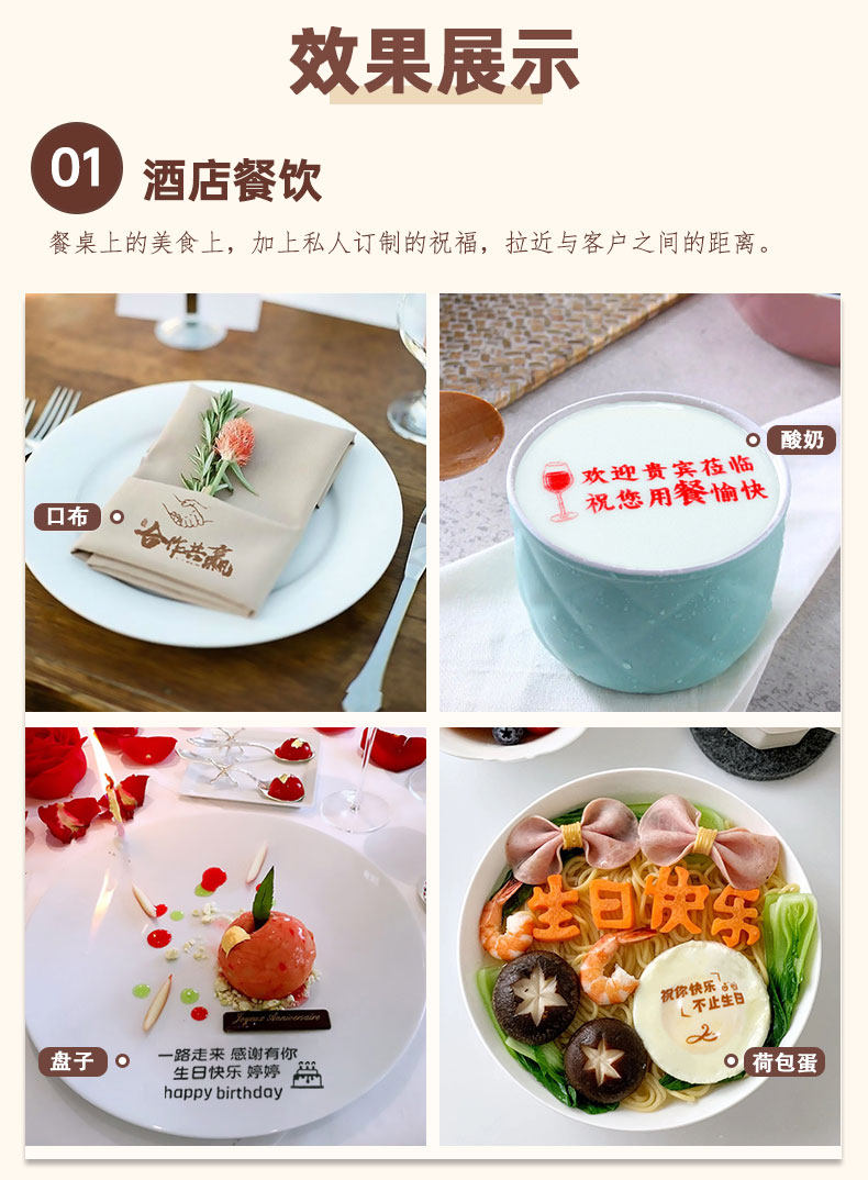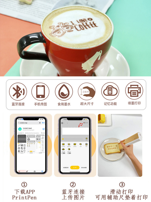 LLRH手持食品打印机Printpen可食用咖啡打印拉花酸奶蛋糕生日快乐餐盘骨碟喷字机器口布印花酒店接待