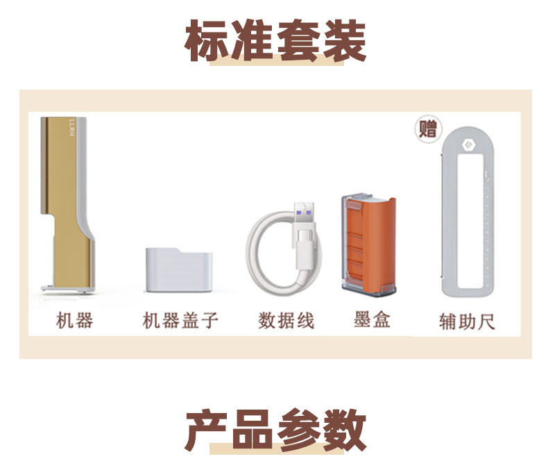 打印机+咖啡色+抹茶色墨盒+辅助尺