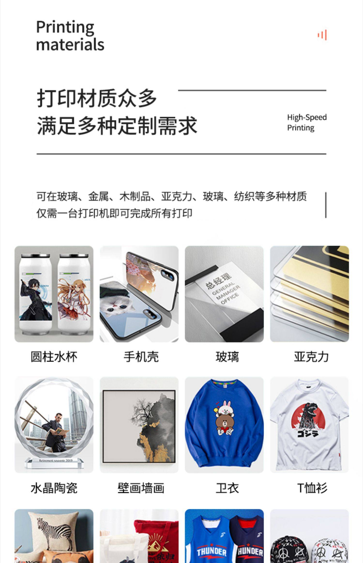 商品名称:匹菱UV打印机A3小型万能平板3D浮雕玻璃镜面食品手机壳塑料图案设备木板金属T恤印刷制作服装T恤印花机器