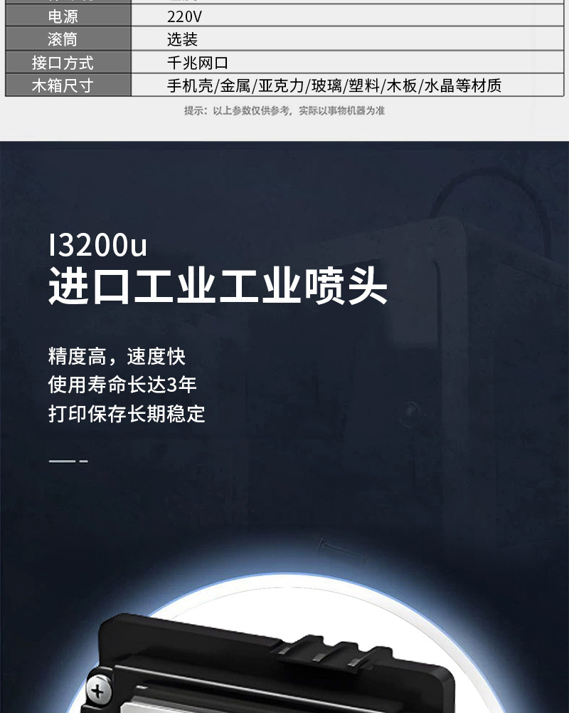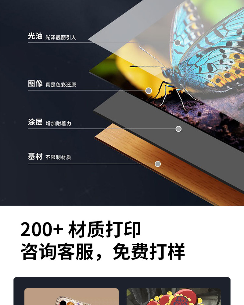 商品名称:小型视觉uv打印机手机壳冰箱贴亚克力钥匙扣金属塑料木板圆柱打印