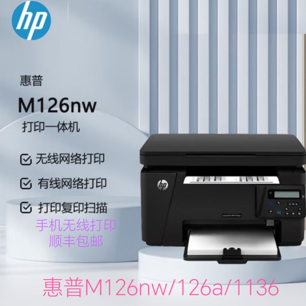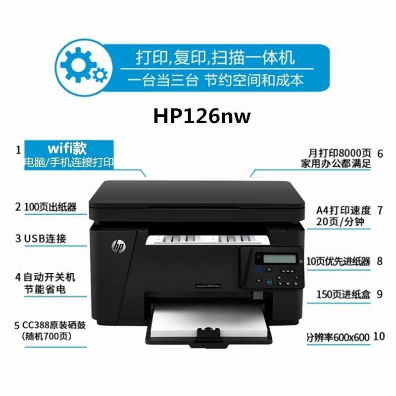 商品名称:惠普m126nw/126a/1136黑白激光打印机复印无线一体机家用小型办公
