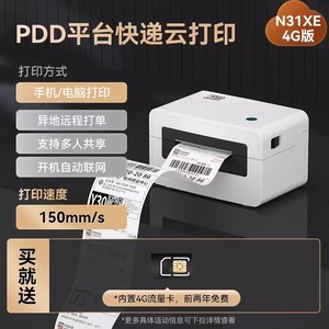 【4G云远程拼多多专版】N31XE拼多多专用版 【手机/+远程打单+多人共享】单机标配