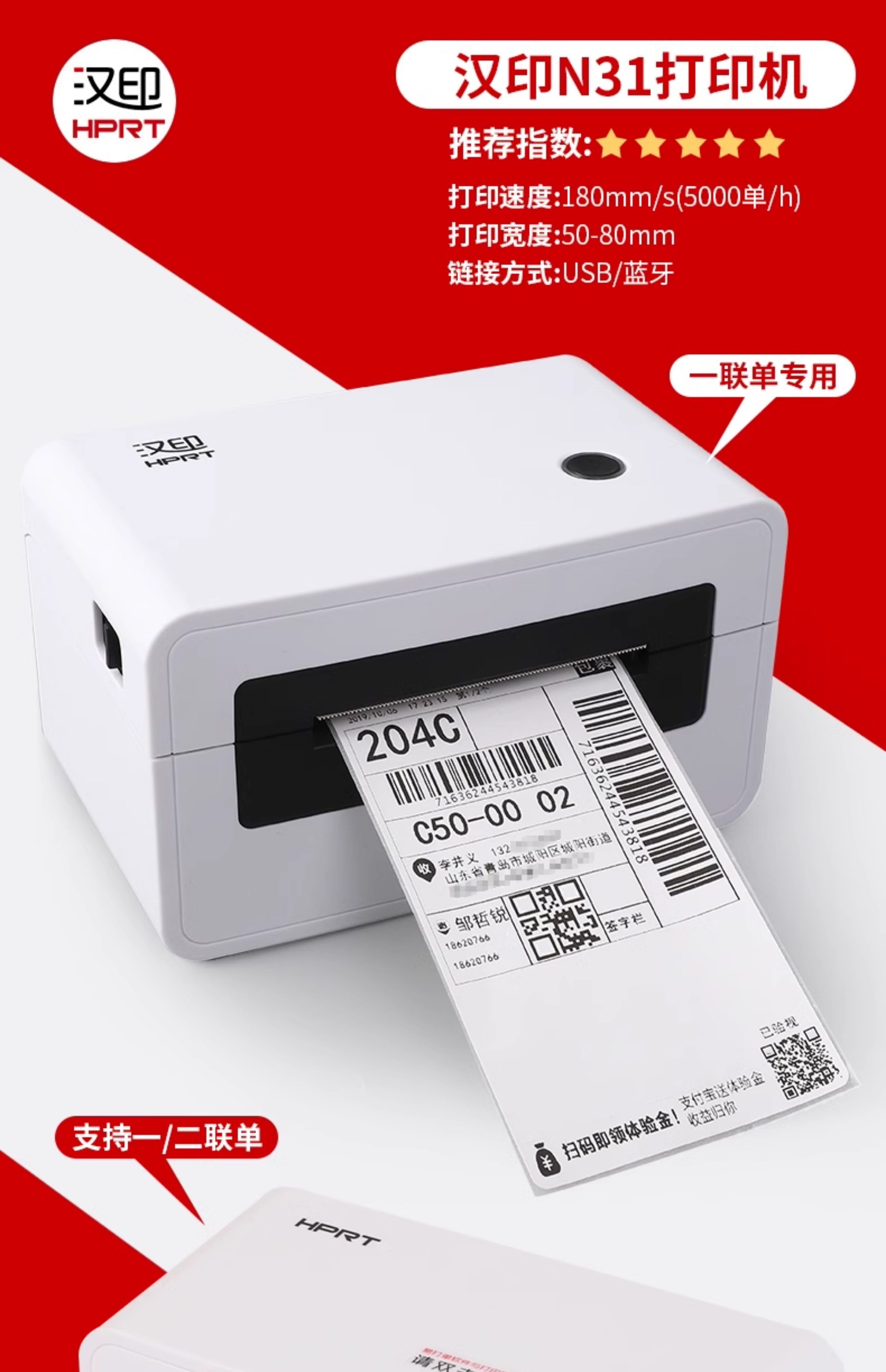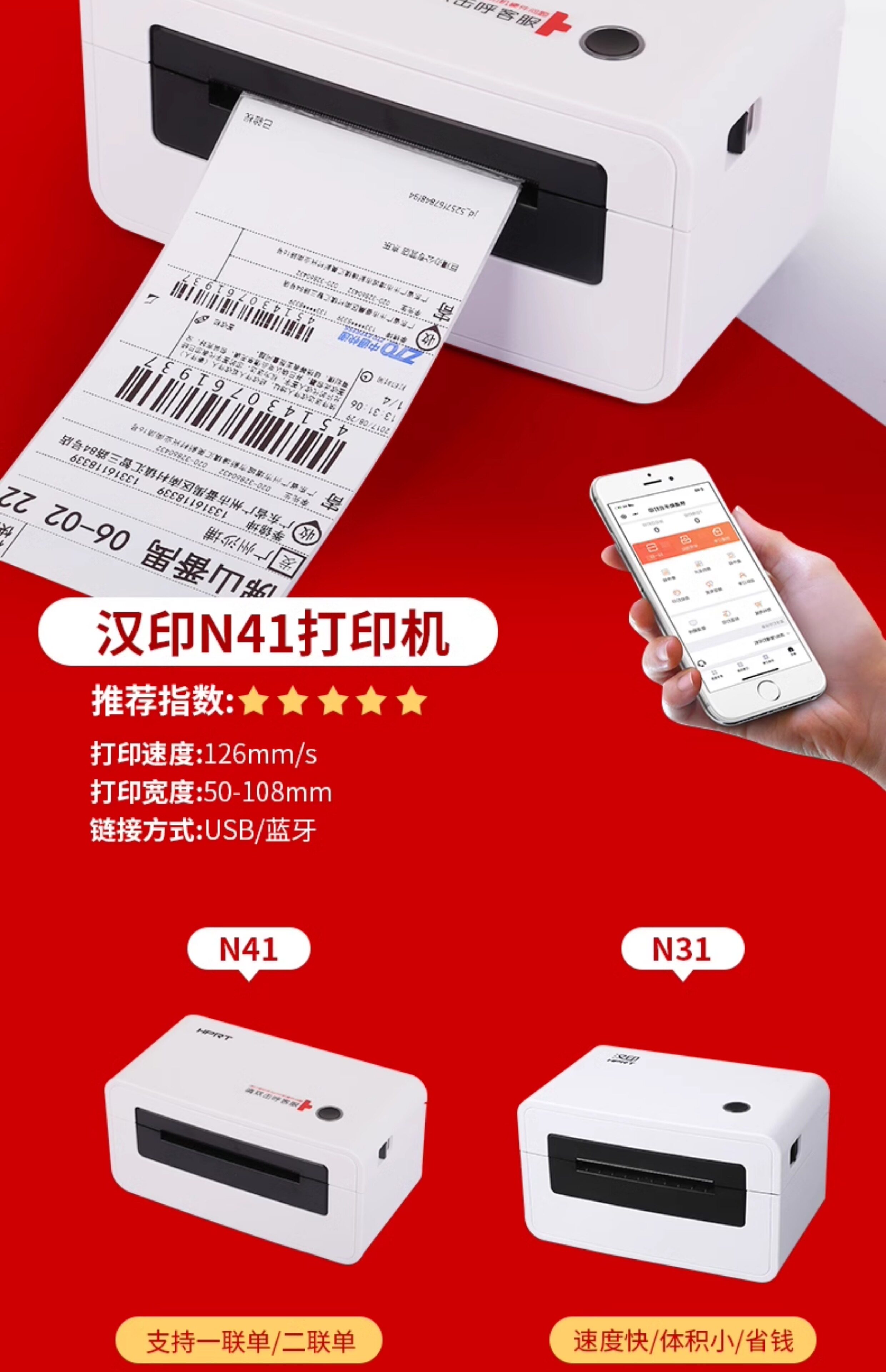 汉印N31/N41快递单打印机一联单快递打单机手机蓝牙4G远程云热敏标签机电子面单抖音直播电商打印小型N51