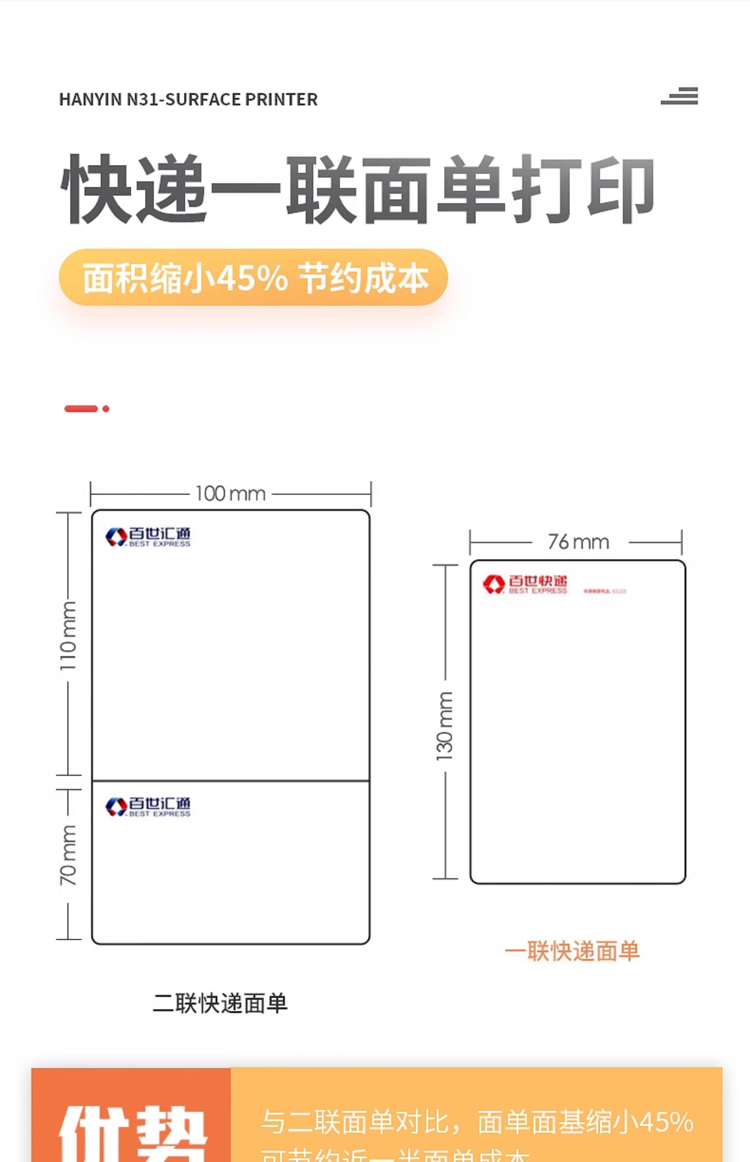 商品名称:汉印N31/N41快递单打印机一联单快递打单机手机蓝牙4G远程云热敏标签机电子面单抖音直播电商打印小型N51