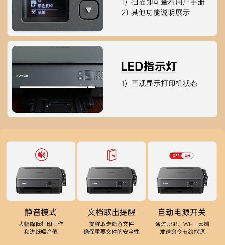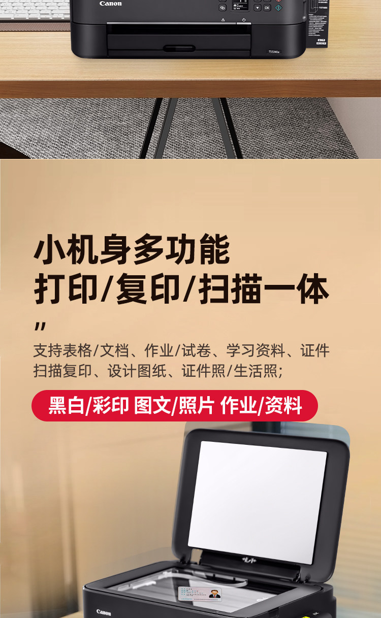 商品名称:佳能5340彩色打印机家用小型复印扫描一体机手机无线照片连供墨仓