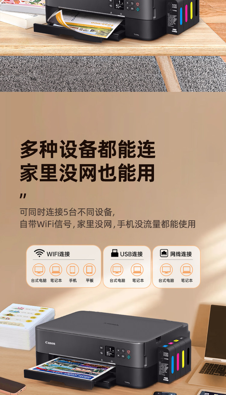 佳能5340彩色打印机家用小型复印扫描一体机手机无线照片连供墨仓