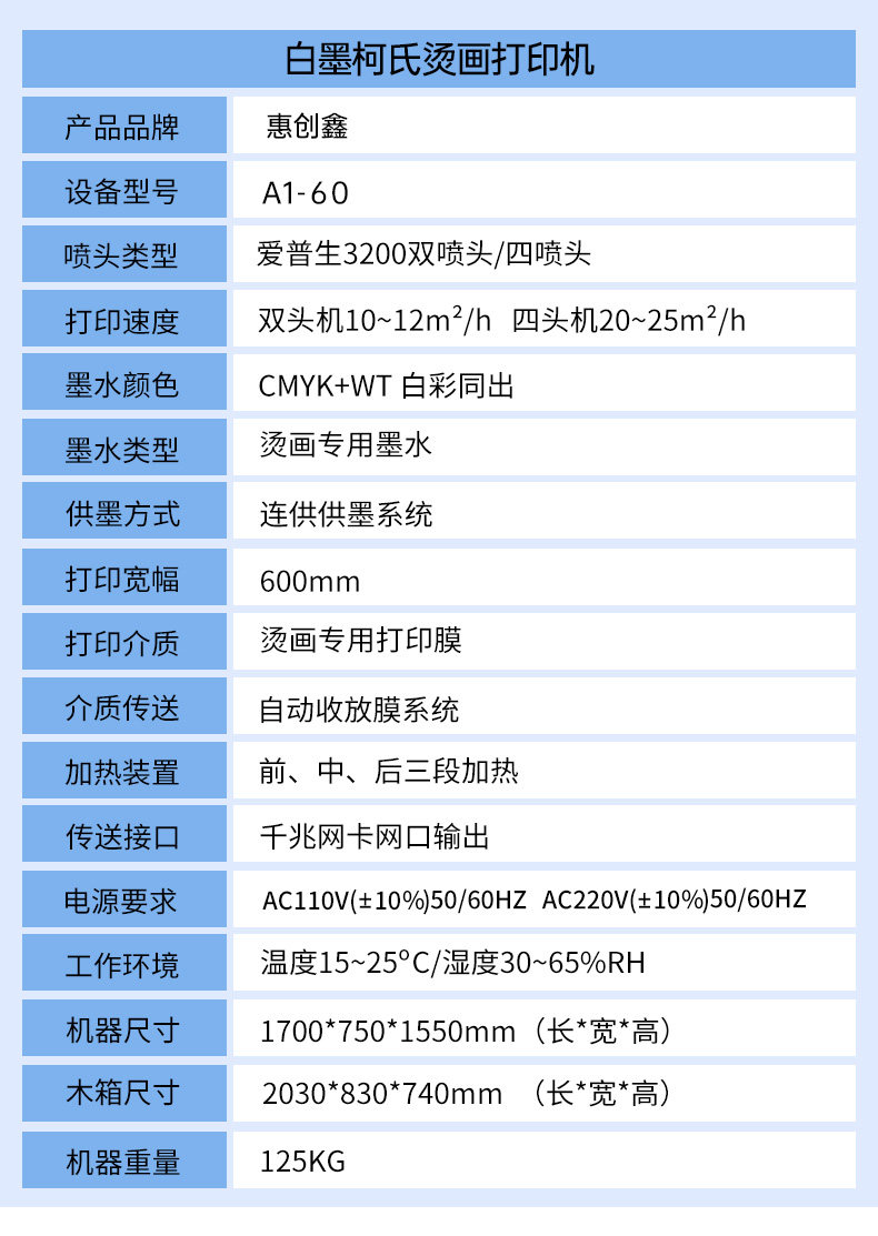 具体参数打样详询客服