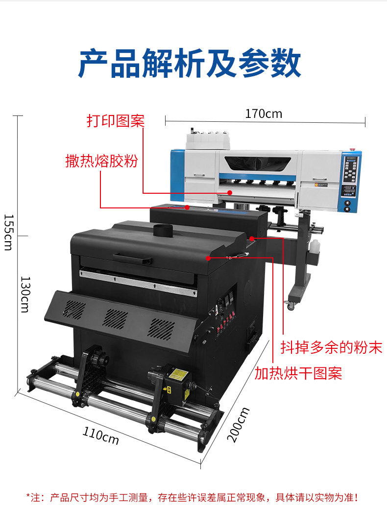 商品名称:DTF白墨烫画打印机全自动抖粉烘干一体机布料衣服T恤柯氏烫画机器