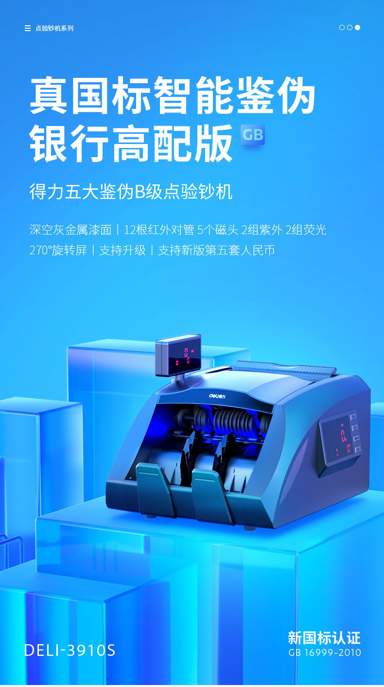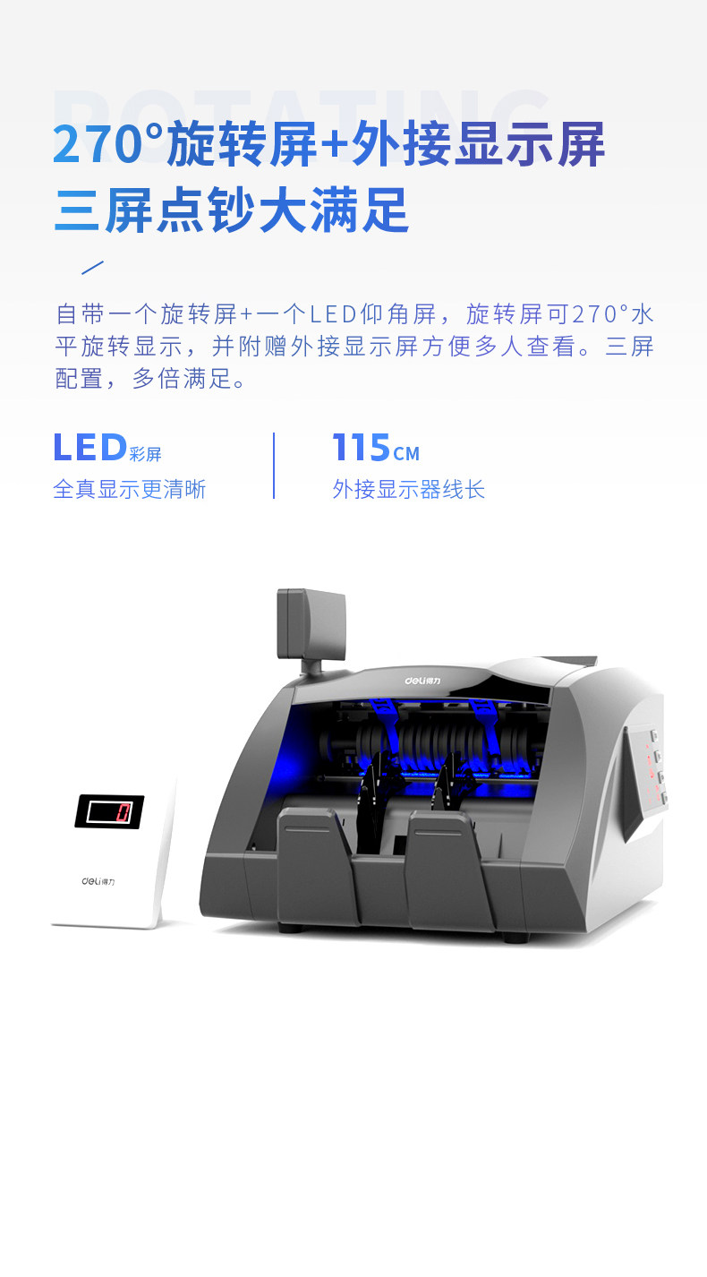 商品名称:得力3910S点钞机新款验钞机B类智能语音三屏显示银行数钱办公商用