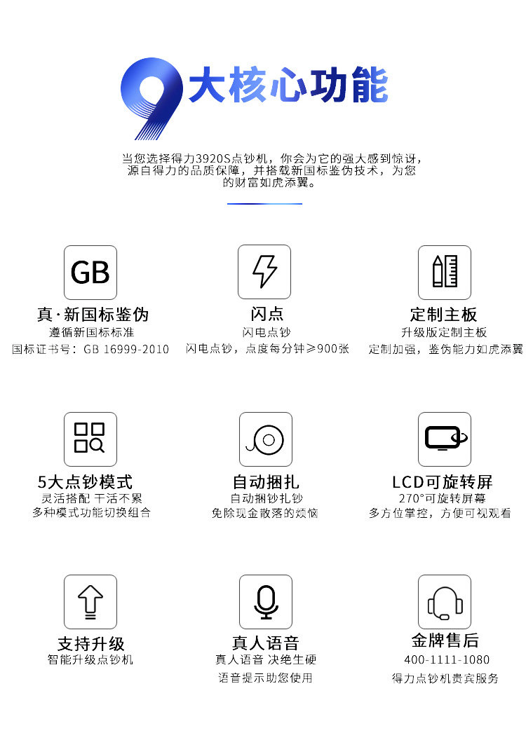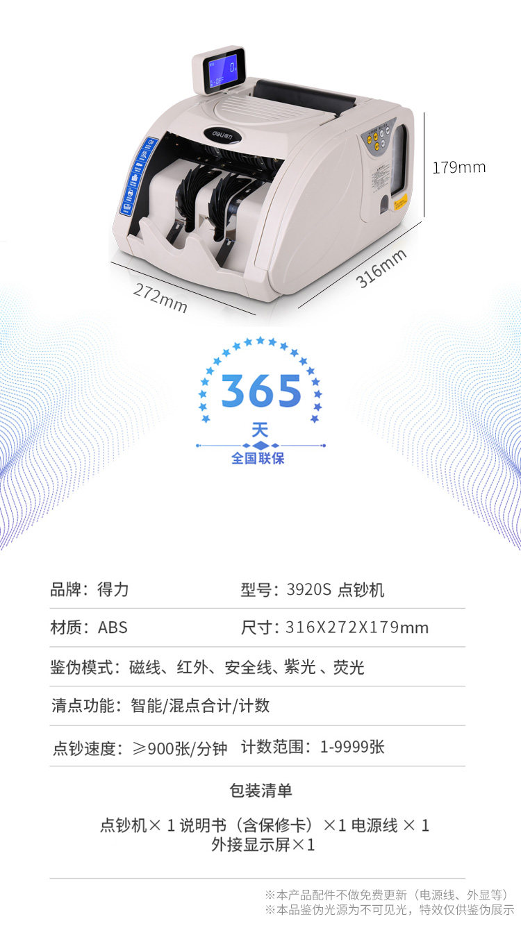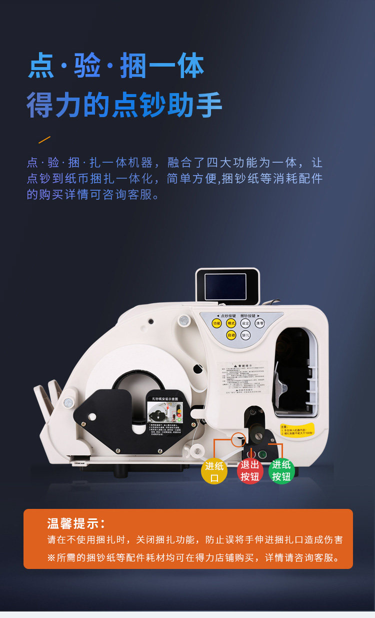 商品名称:得力3920S点钞机新款验钞机B类捆点一体机银行办公商用收银带捆钱
