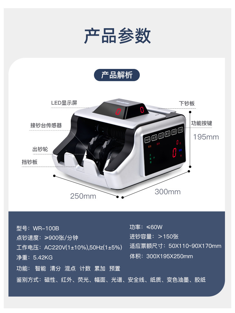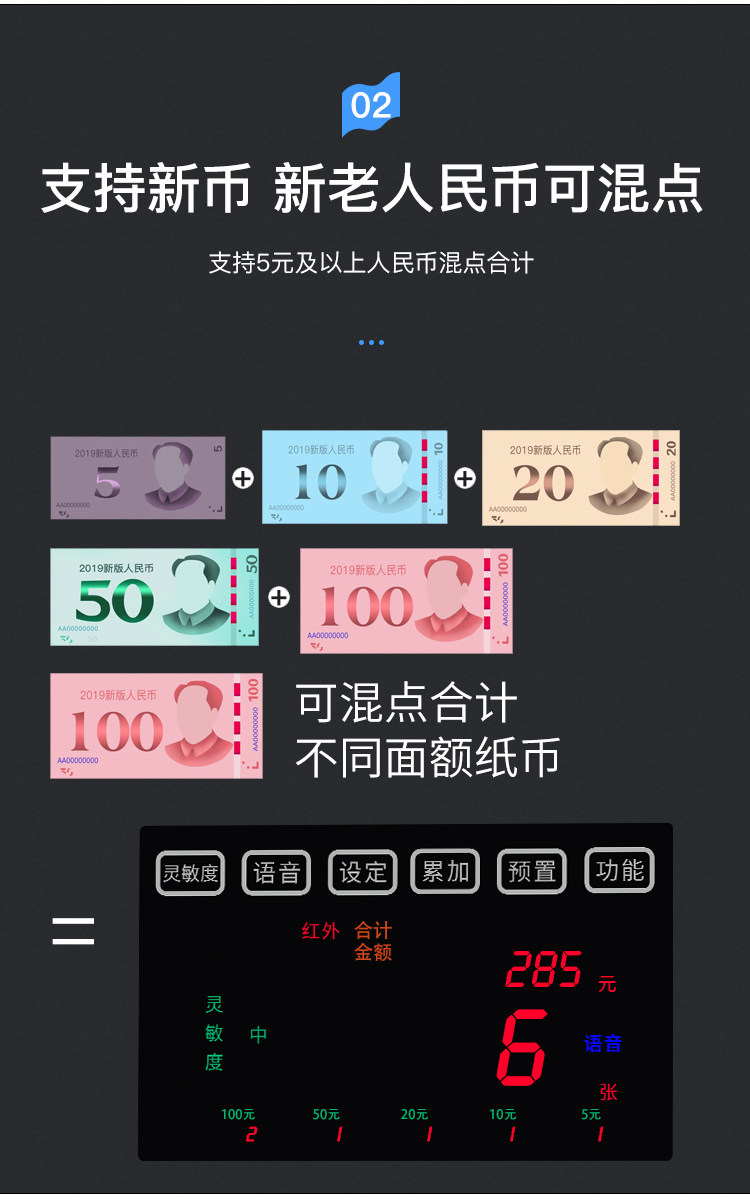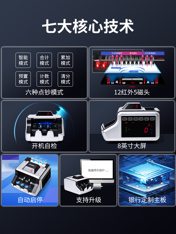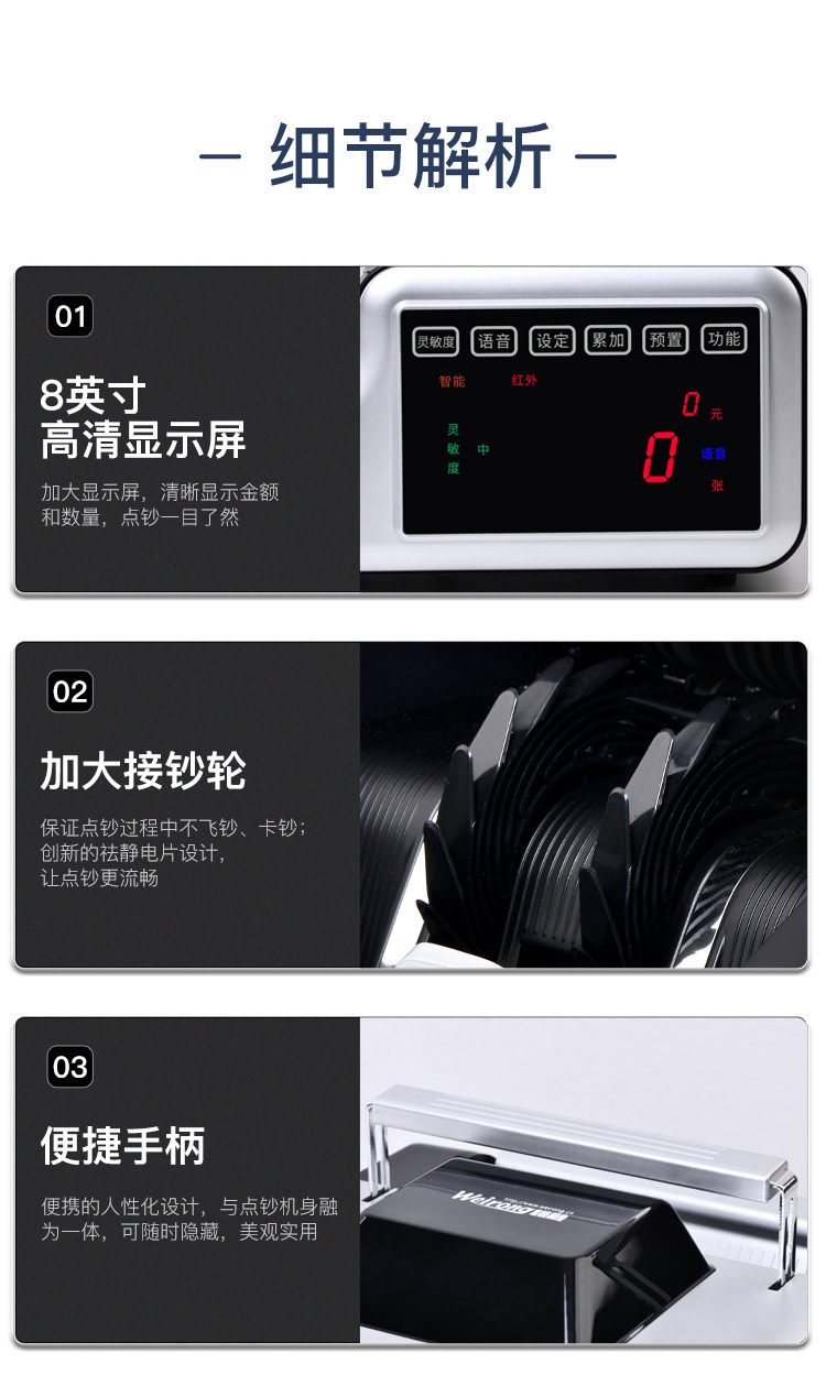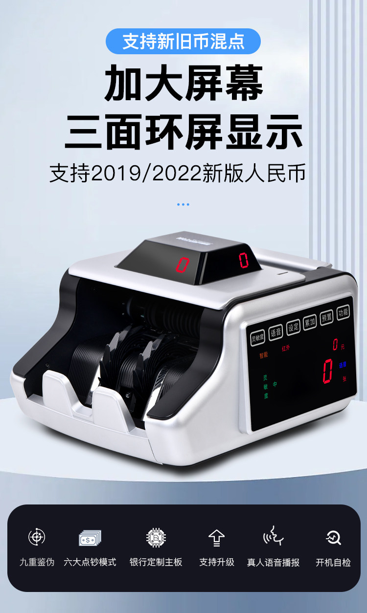 商品名称:【A类主板芯片 8寸大屏】维融新版验钞机商用小型便携式家用办公收银智能语音迷你数钱机100B类25新款点钞机