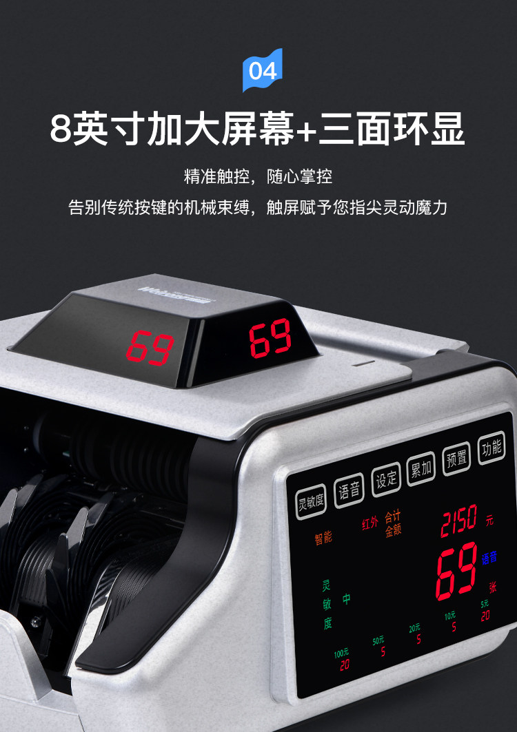 【A类主板芯片 8寸大屏】维融新版验钞机商用小型便携式家用办公收银智能语音迷你数钱机100B类25新款点钞机