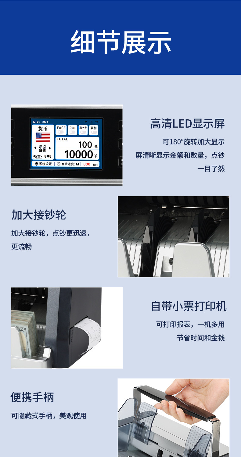 商品名称:2025新款依特诺牌T3800型外币点钞机value counter/moneycounter欧元美元人民币澳币马币泰铢双CIS智能点钞机