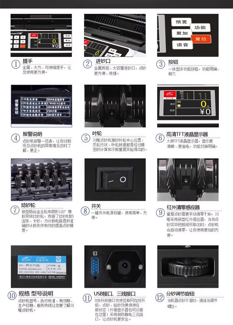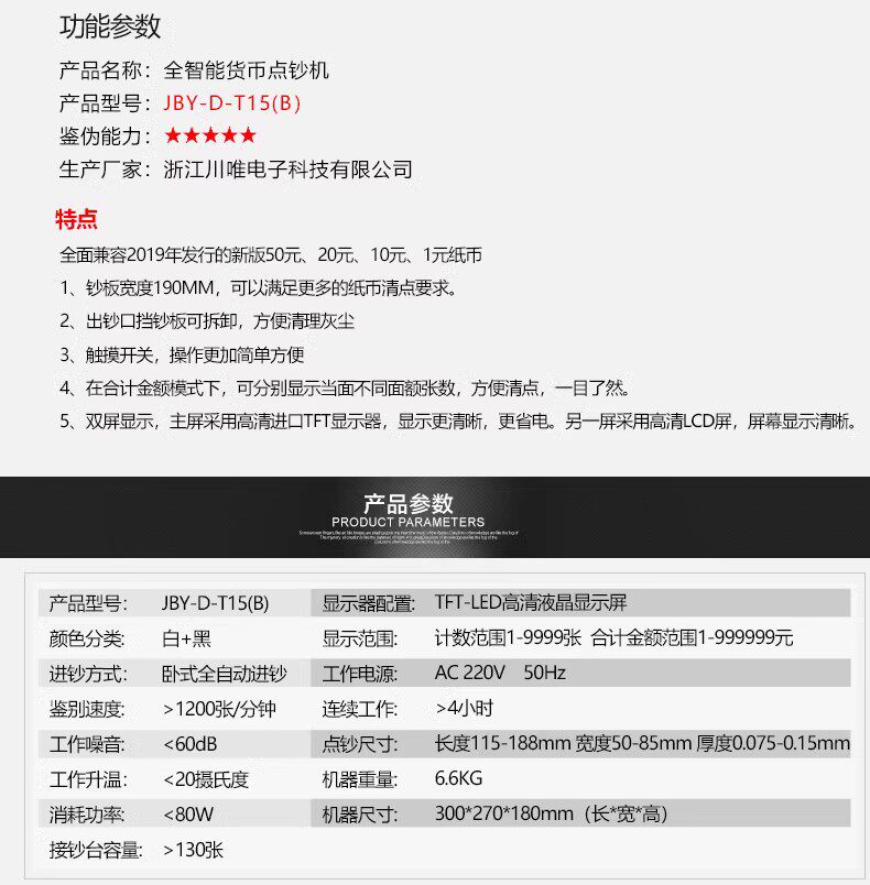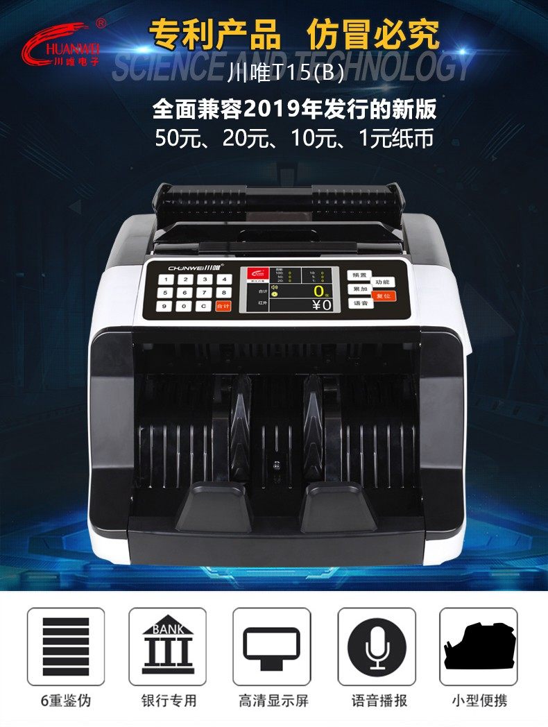 商品名称:川唯点钞机T15B充电款支持新币银行专用商用小型车载便携式验钞机