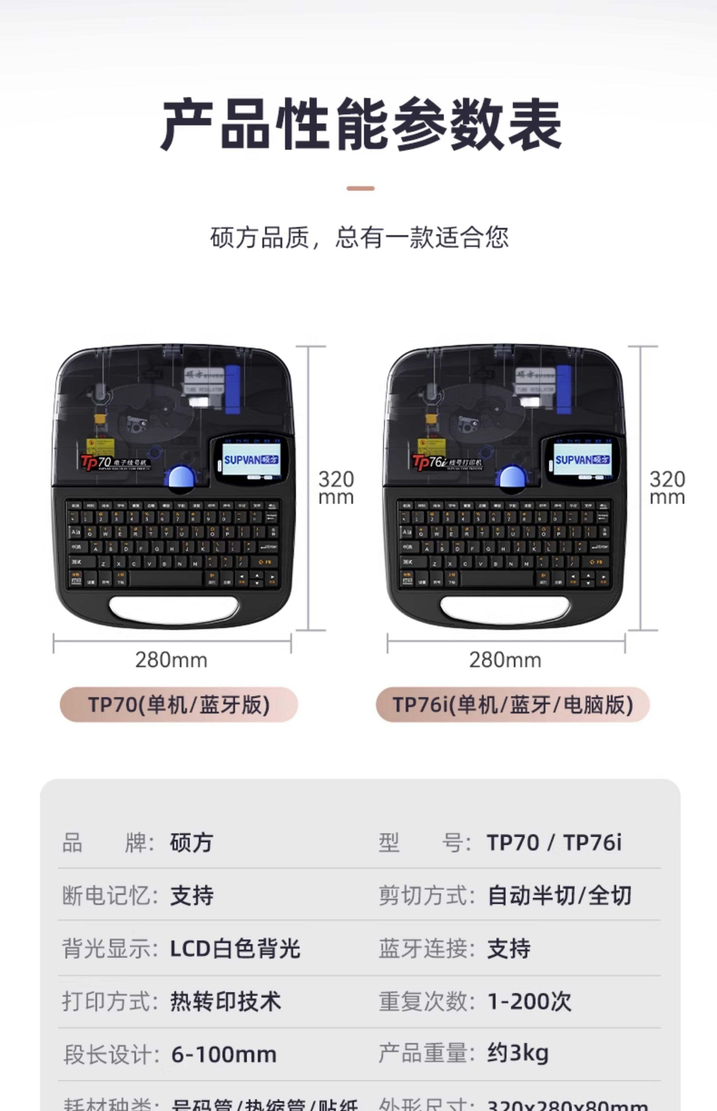 TP70蓝牙版【含10色带10套管1贴纸+支架】开专票