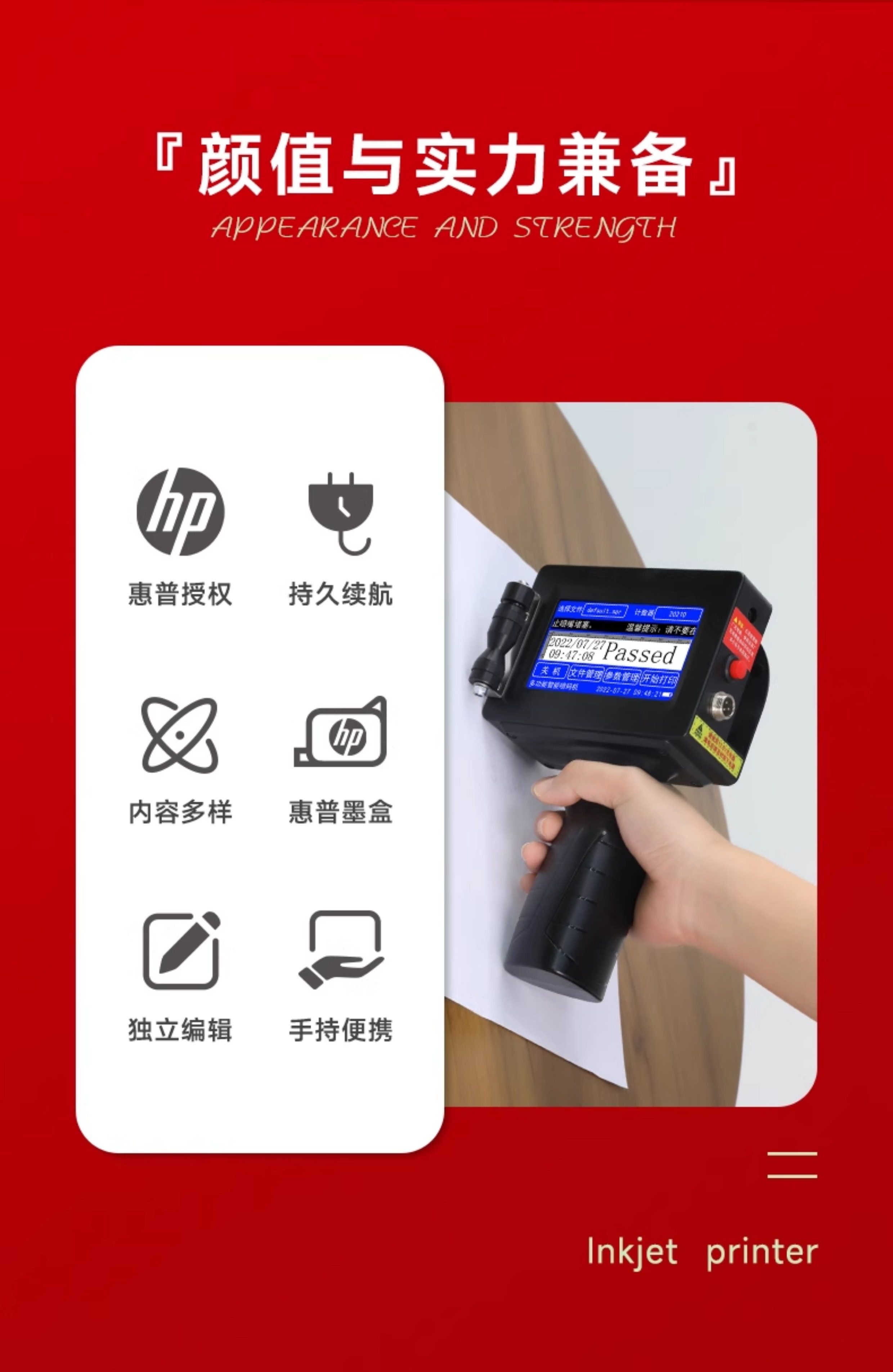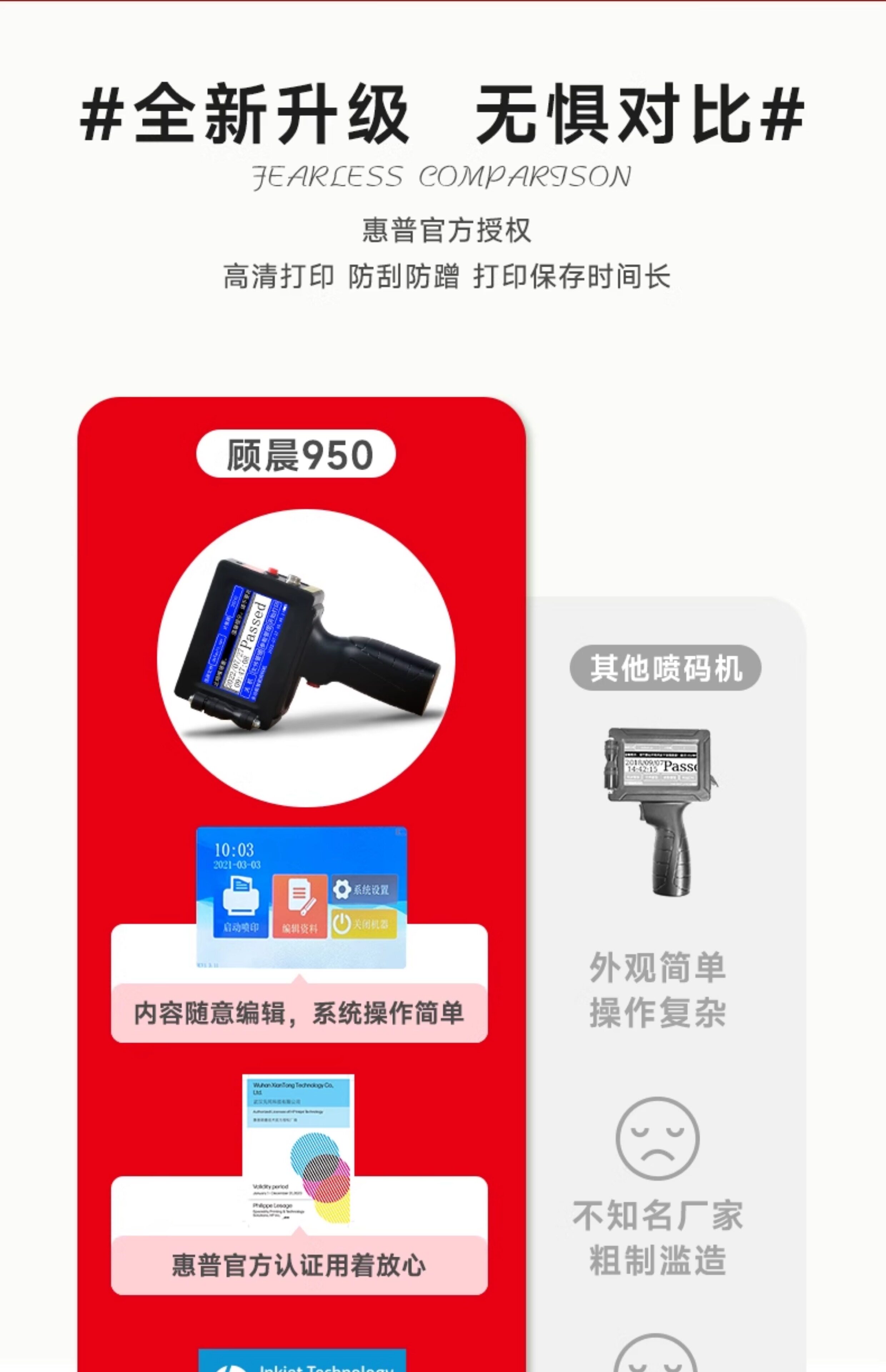 商品名称:【快递包邮】【标配惠普墨盒】顾晨GC950 智能手持式喷码机手持小型喷码机打生产日期保质期打码机手动