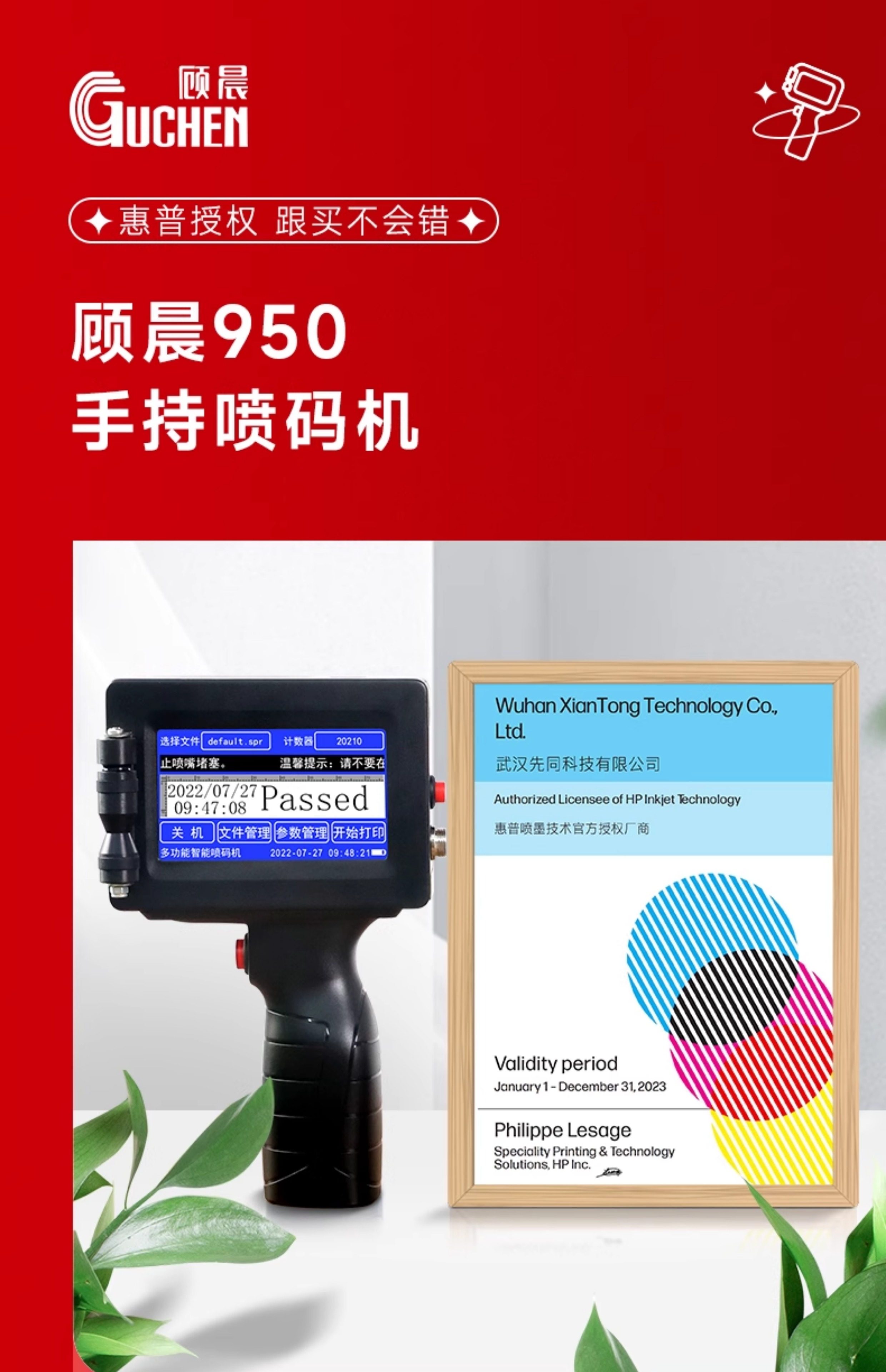 【快递包邮】【标配惠普墨盒】顾晨GC950 智能手持式喷码机手持小型喷码机打生产日期保质期打码机手动