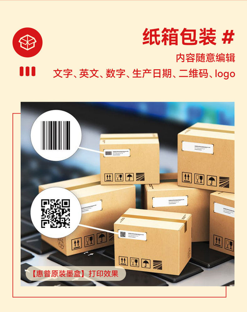新款喷码机+【隐形】惠普高附着力墨盒+纸箱包装