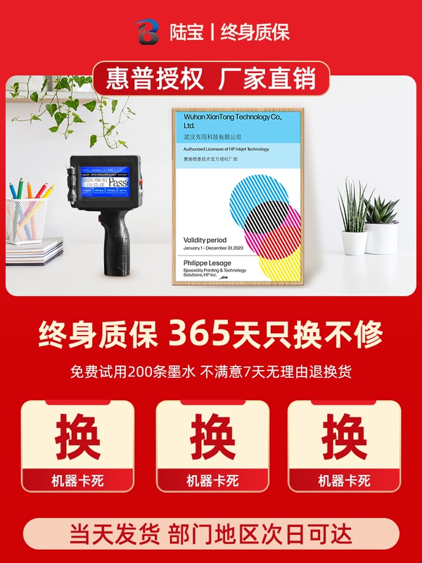 商品名称:【快递包邮】【惠普授权】陆宝LB100 智能手持式喷码机手持小型打码机月饼食品生产日期保质期打码机