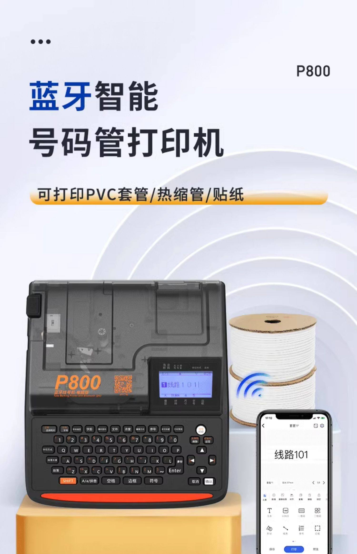 【顺丰包邮】普贴P800蓝牙号码管打印机电子线号机PVC贴纸便携式手持号码机打号机线标P700热缩管套管打码机