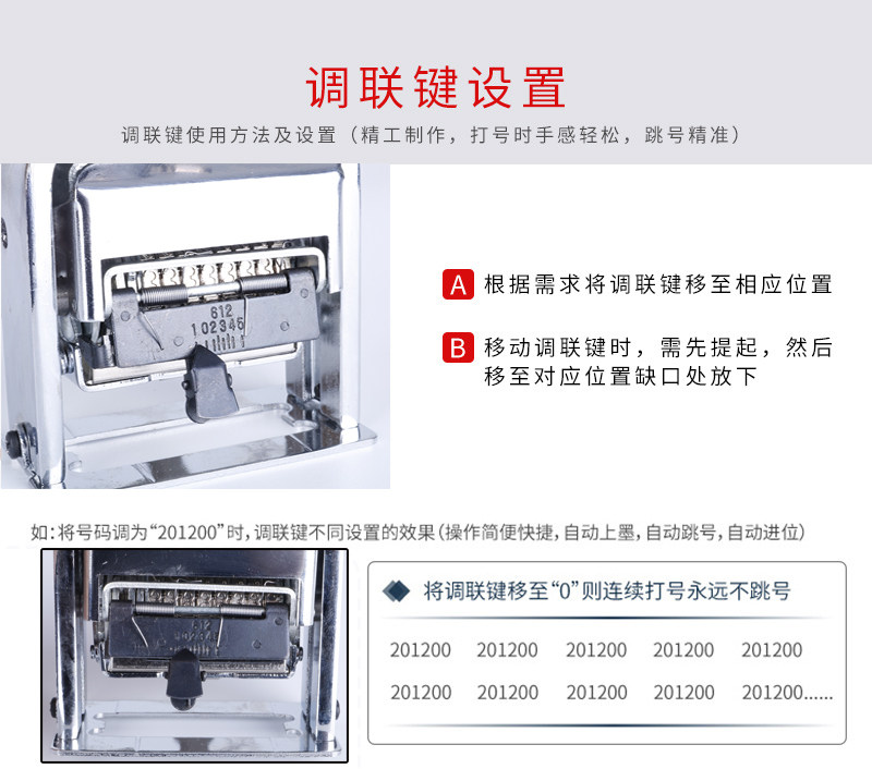 商品名称:号码机3位6位8位12位打码机自动跳号编码机发票数字编号打号器进号机连续页码数字机可调手动银行财务大号机