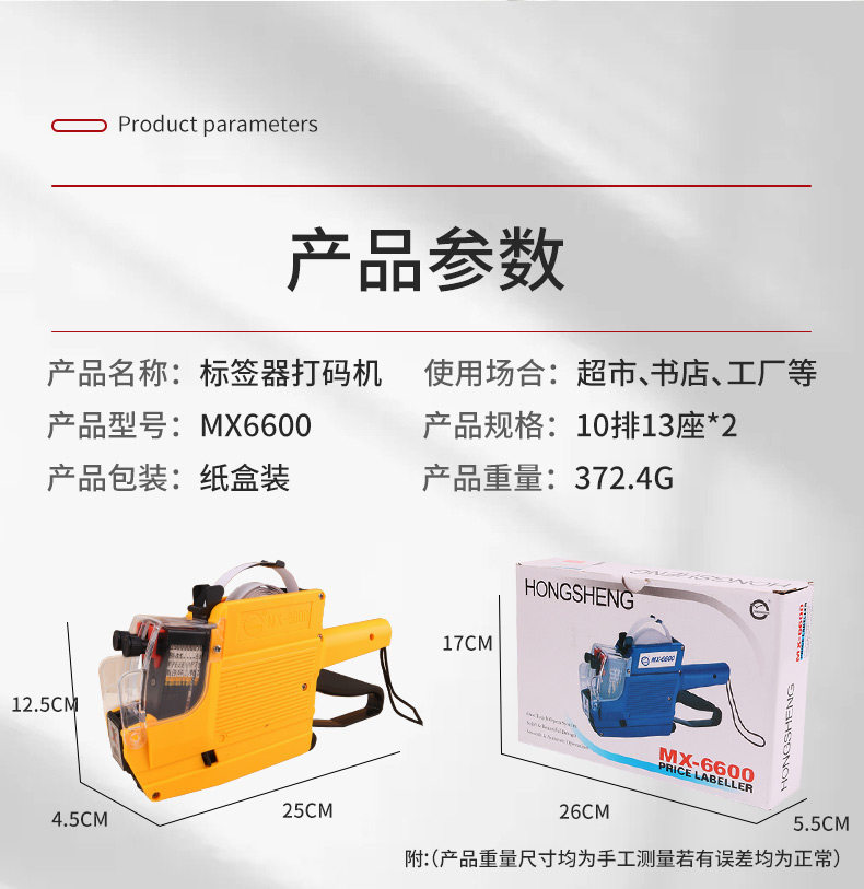 商品名称:双排6600打码机标价机超市价格打价机款号日期手动双行标价打印机器百货商店价签机商品价签不干胶两行打印