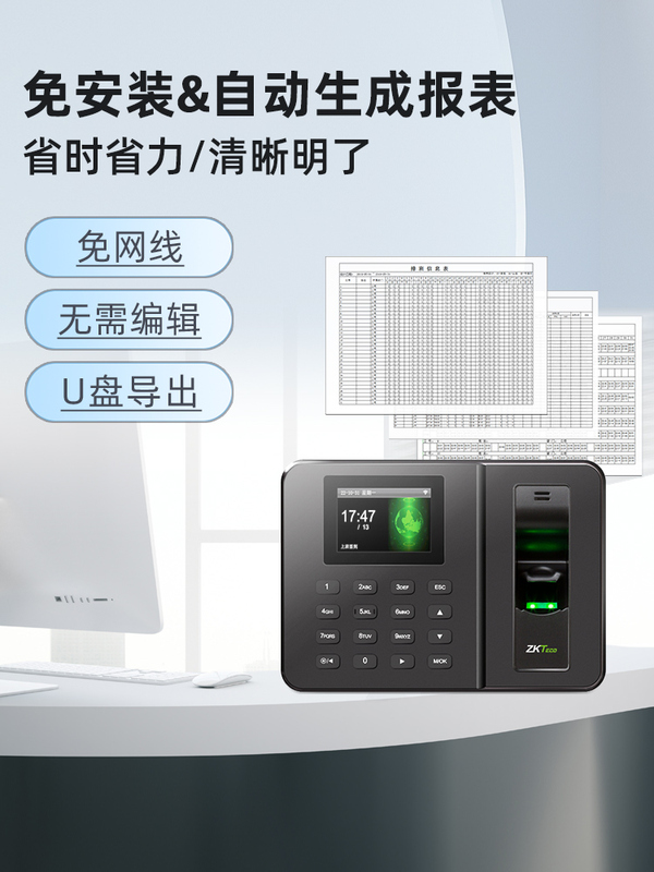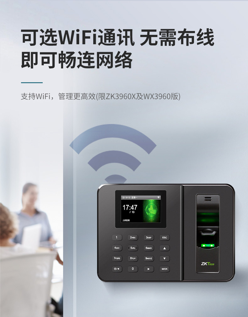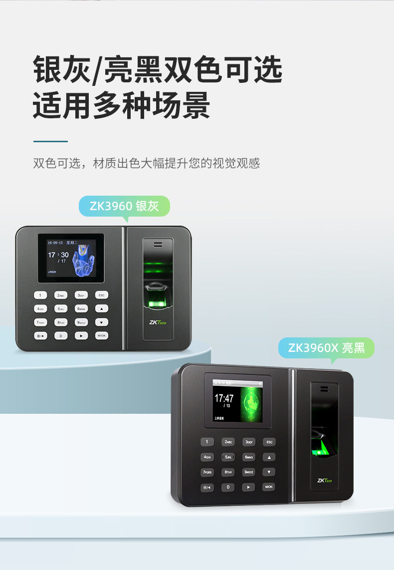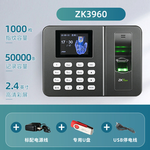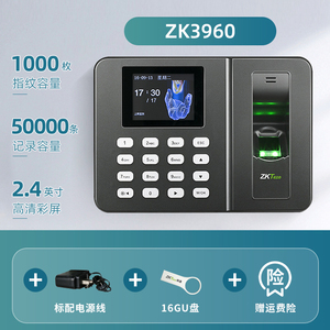 ZKTeco熵基科技zk3960X指纹式打卡机BK200人脸识别考勤机公司员工上班签到机手指打卡器工厂刷脸面部打卡出勤
