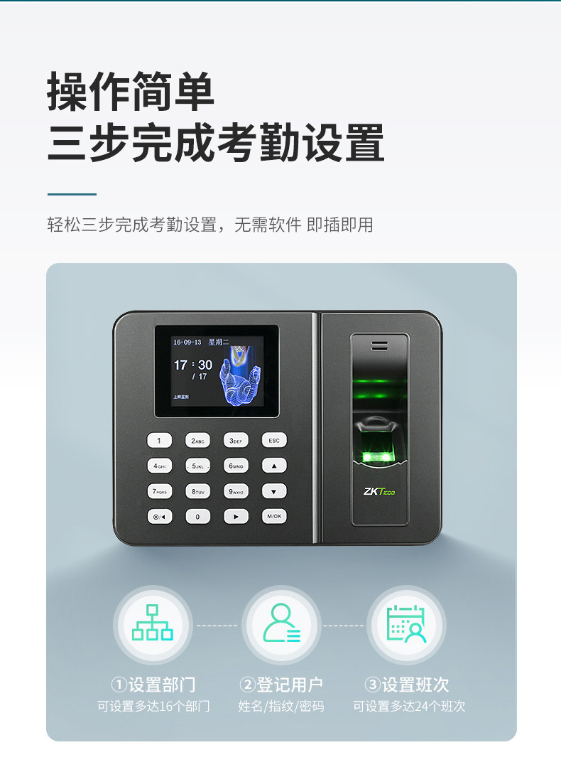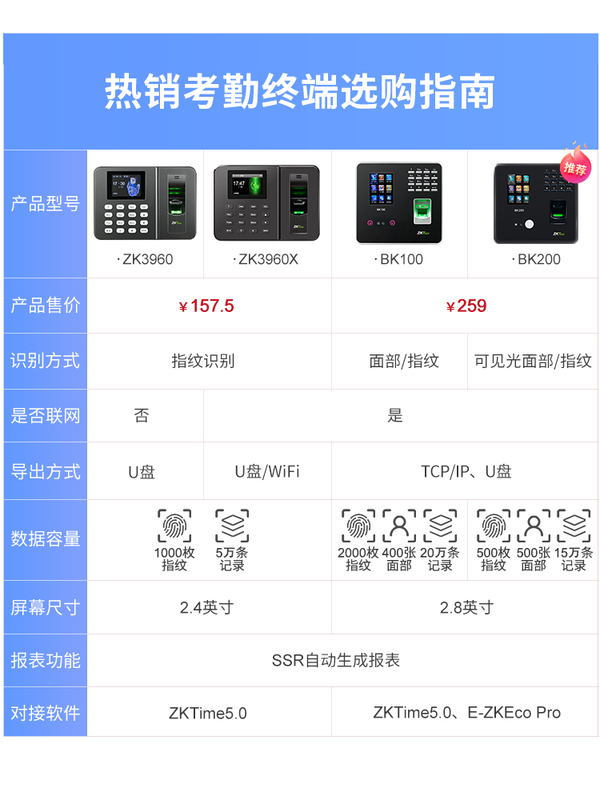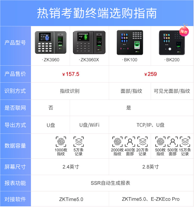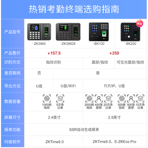 商品名称:ZKTeco熵基科技zk3960X指纹式打卡机BK200人脸识别考勤机公司员工上班签到机手指打卡器工厂刷脸面部打卡出勤
