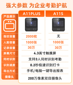 A11PLUS人脸+指纹+密码|WIFI联网云考勤机+停电后备电源【停电可供电使用】