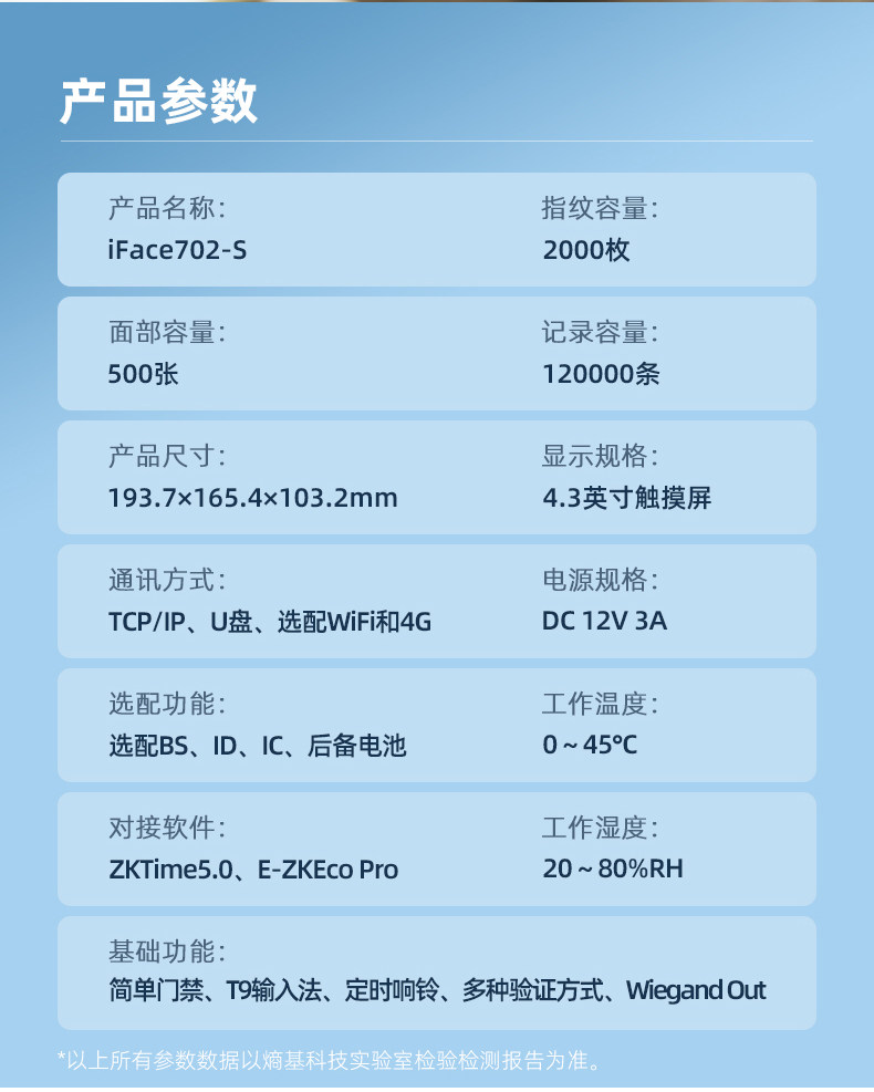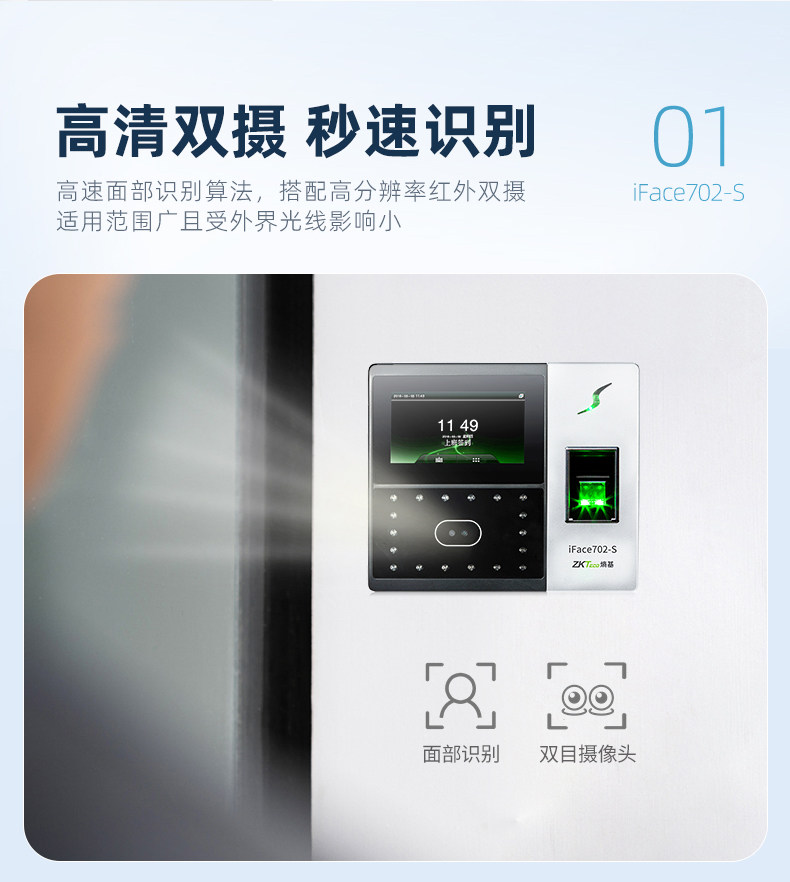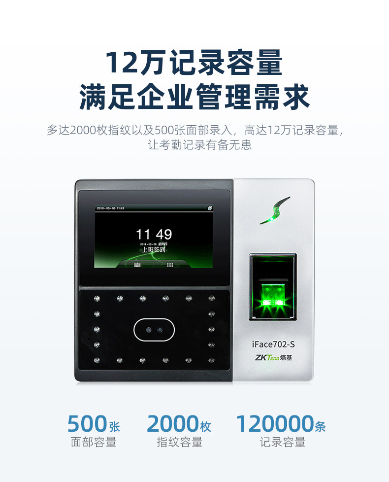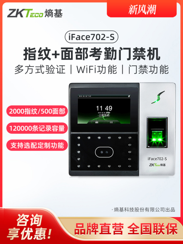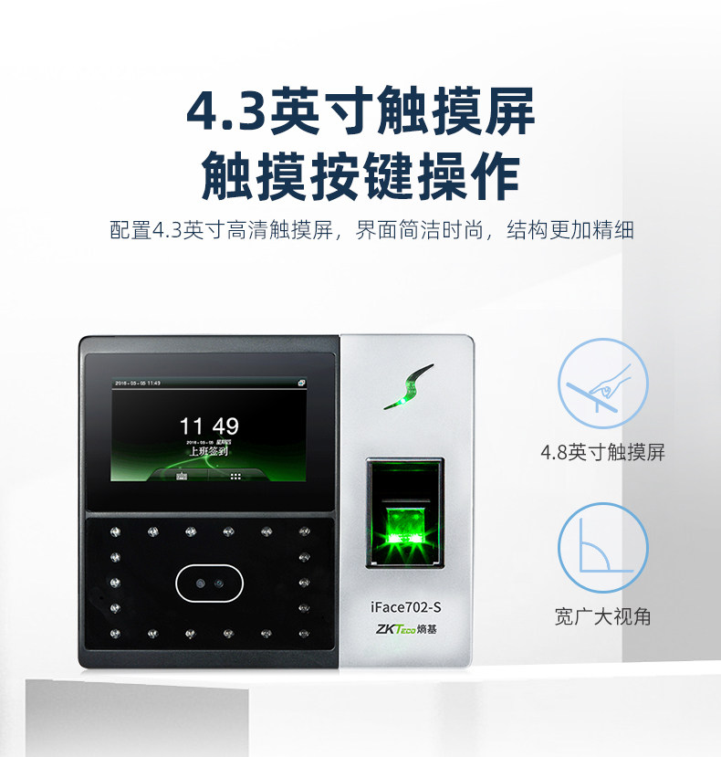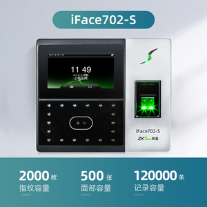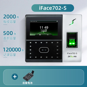 商品名称:ZKTeco熵基科技升级iface702-S人脸识别考勤机指纹面部考勤门禁一体机打卡机公司员工上班签到机刷脸打卡器