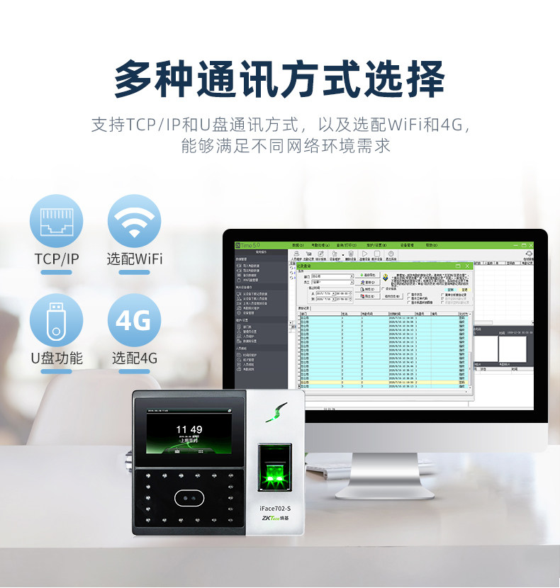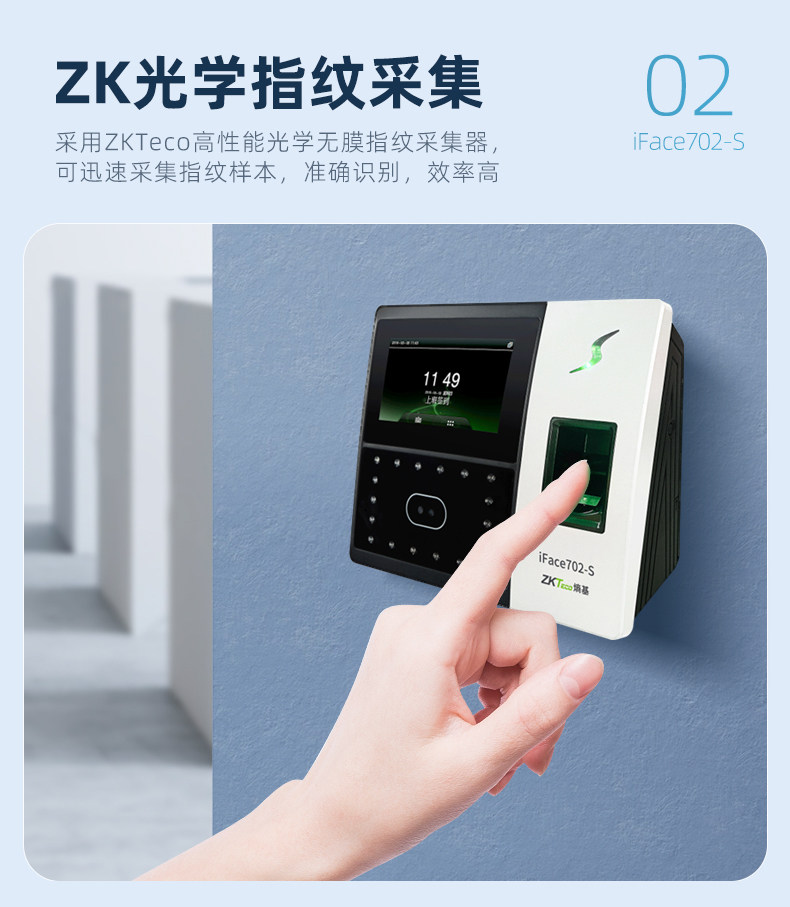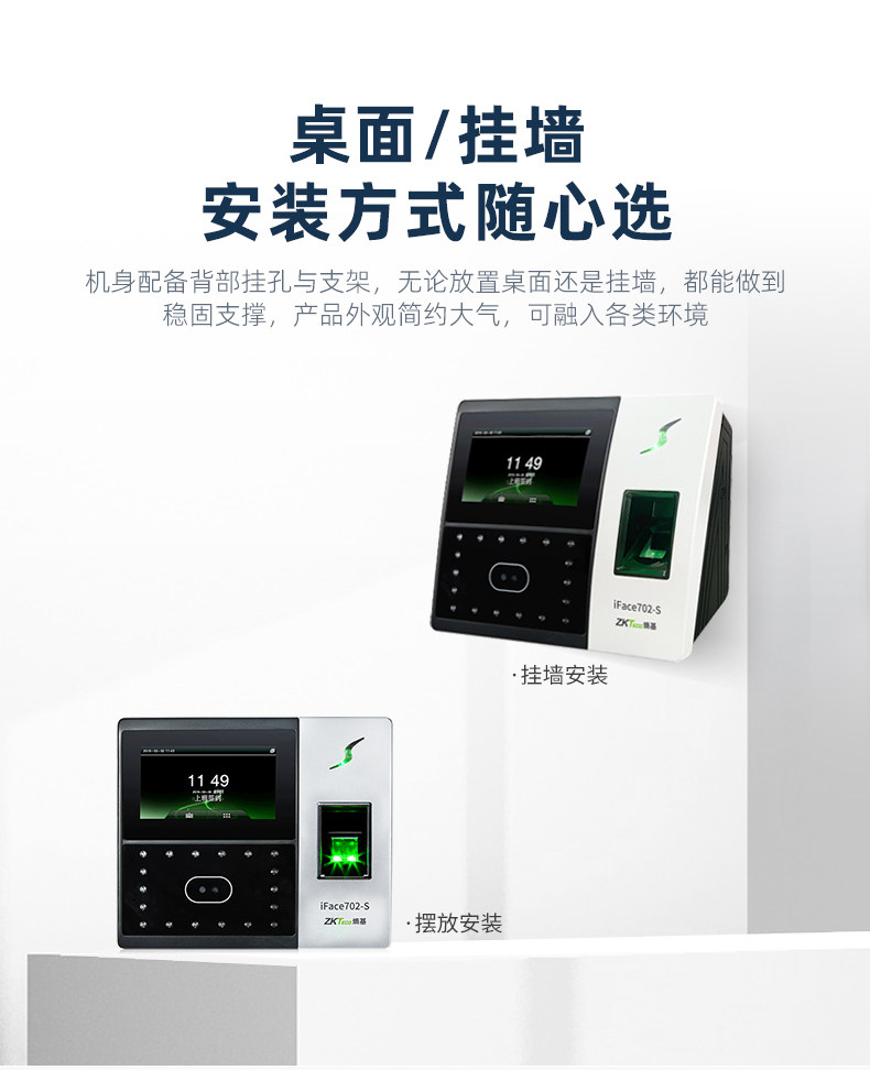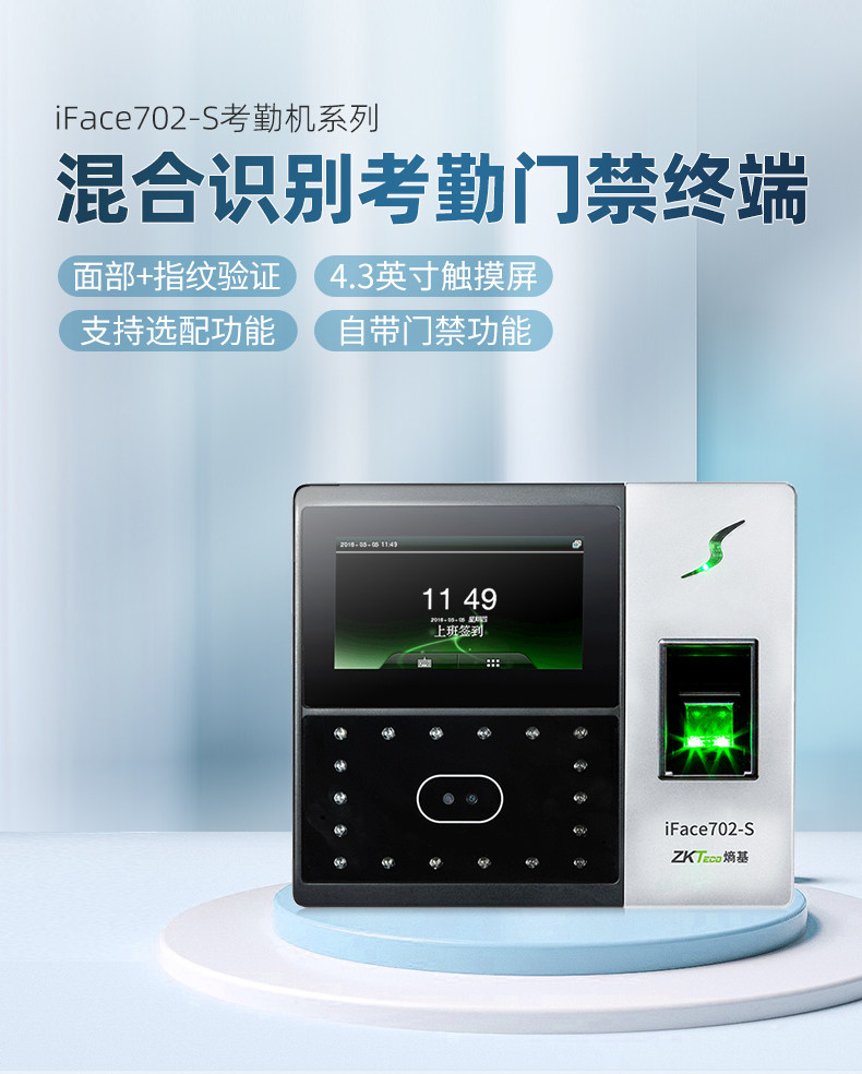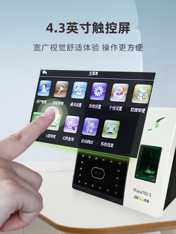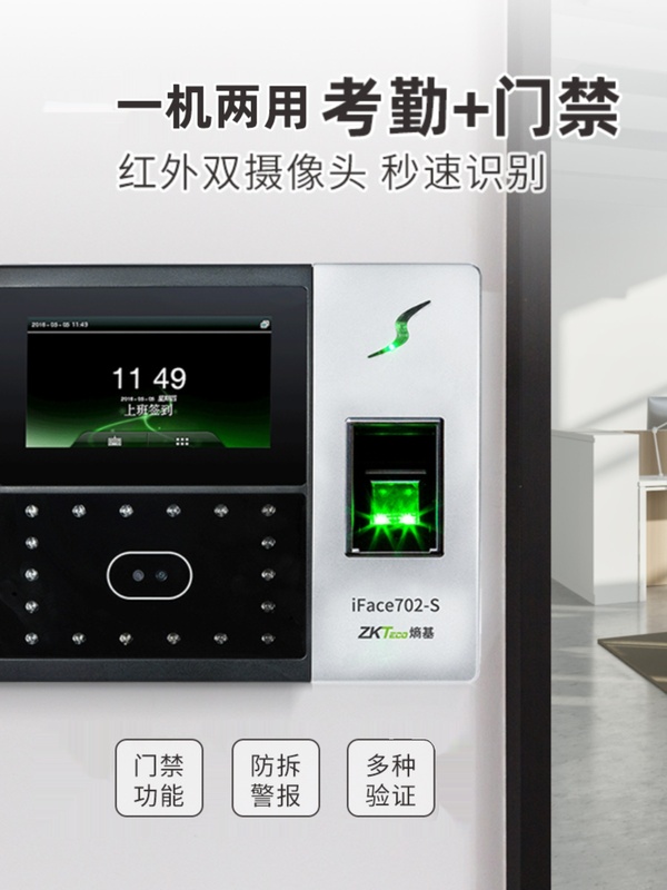 ZKTeco熵基科技升级iface702-S人脸识别考勤机指纹面部考勤门禁一体机打卡机公司员工上班签到机刷脸打卡器